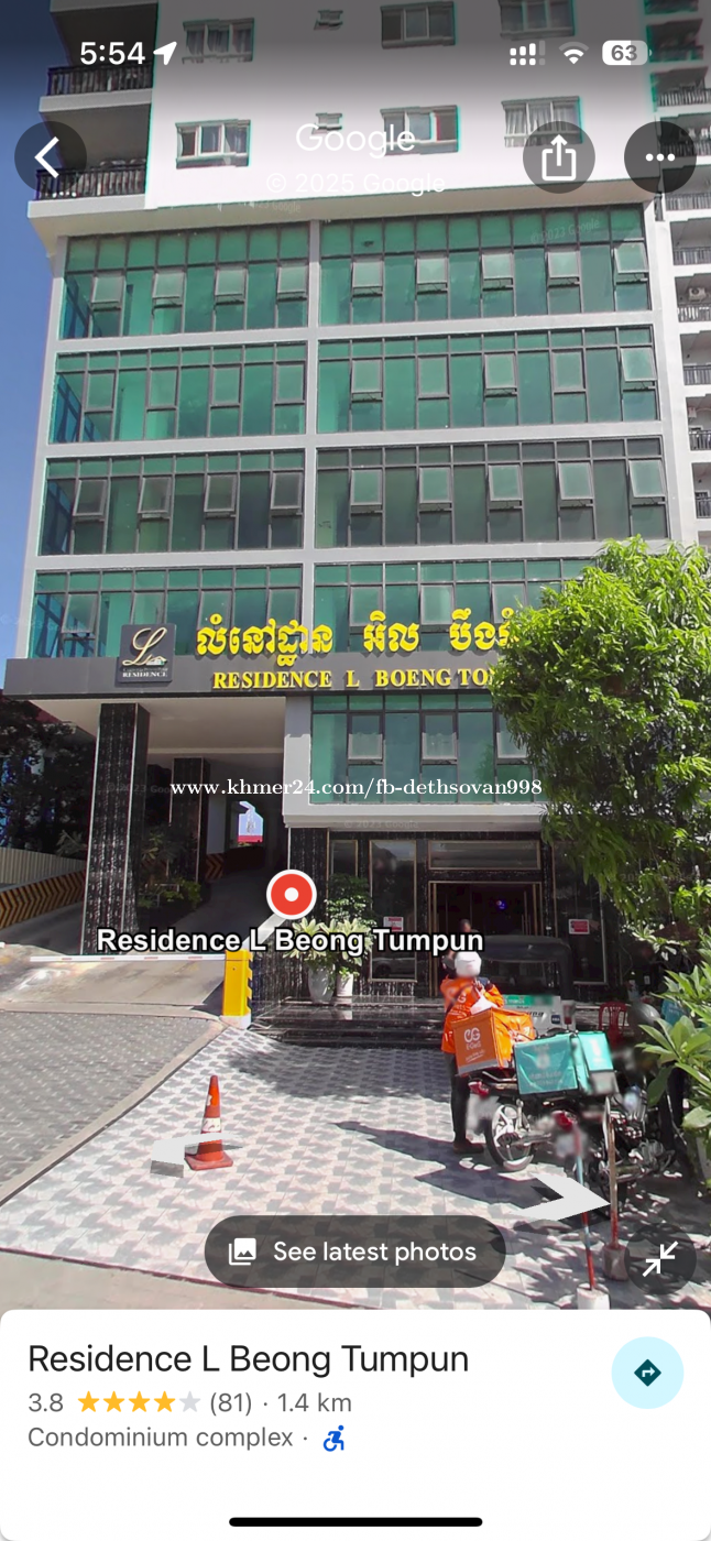 មានបន្ទប់ជួល 200$ Condo Condo Residence L Beong Tumpun Type : 1bedroom Price : 180$/months Floor: 18 G10 Management Fee: 24.25$ V Electric: 0.25$ Water o : 0.75$ Moto parking free មានសំភារៈ - ម៉ាស៊ីនត្រជាក់ 2 - ម៉ាស៊ីនបោកខោអាវ 1 - ទូរទឹកកក 1 - ទូរទស្សន៍ 1 - សាឡុង 1 - តុ 1 - កៅអី 2 - ទូជ័រដាក់ខោអាវ 1 - វាំងននក្រាស ទីតាំង ចូលតាមផ្លូវវត្តដំបូកខ្ពស់