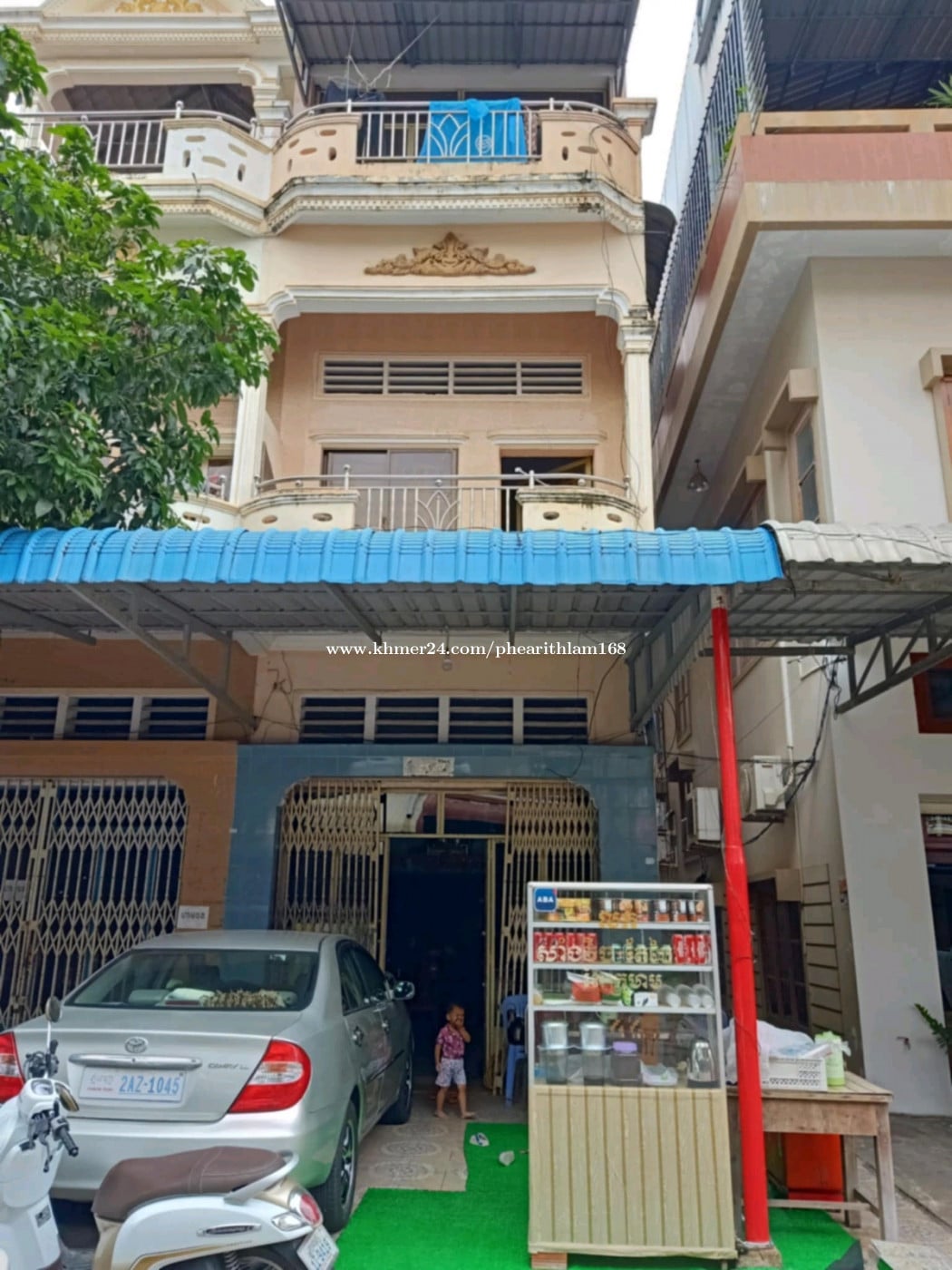 ជាន់ទី១មាន៣បន្ទប់ និងជាន់ទី២មាន២បន្ទប់និងមានកន្លែងដាក់ម៉ូតូ