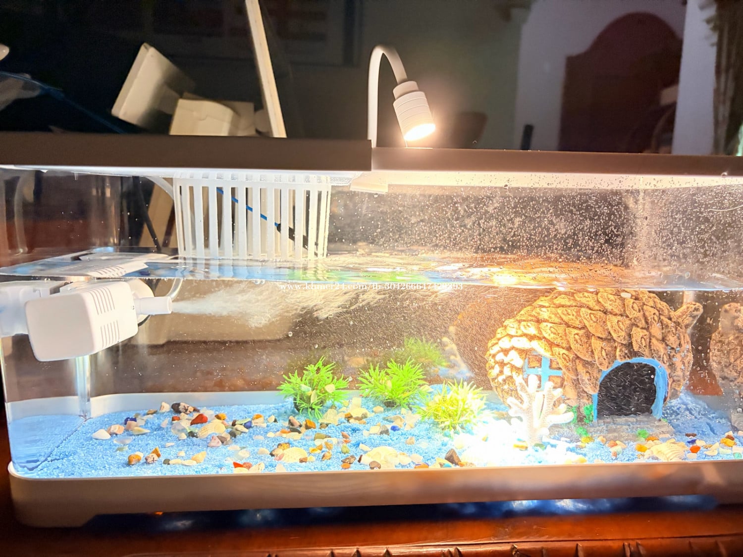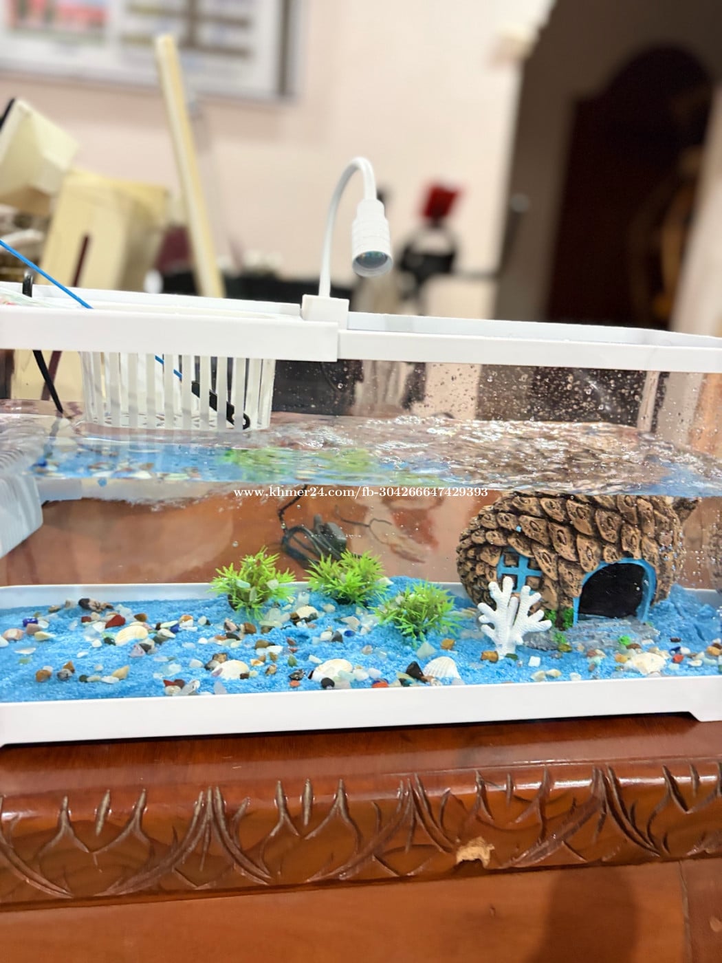 ទូចិញ្ចឹកត្រីមានជាឈុតរួចស្រេច៖ មាន ម៉ូទរ័ កន្ត្រងដួសស្លែ អំពូលភ្លើង ខ្សាច់ពណ៌បាតអាង គ្រួសពណ៌ គ្រឿងដេគរ័ក្នុងអាង3មុខ