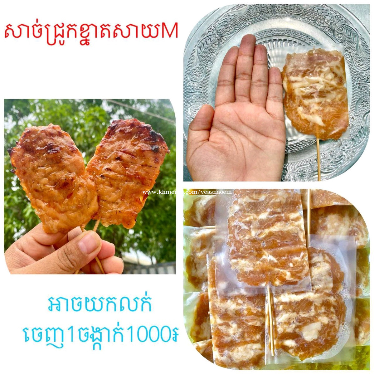 មានលក់សាច់ជ្រូកអាំងសម្រាប់បោះដុំនិងរាយលក់ជូនក្នុងតម្លៃពិសេសបងៗលក់សាលារៀន ខ្នាតតូចលក់ក្នុងតម្លៃ18000៛ក្នុង1ដុំមានសាច់55ចង្កាក់យកច្រើនគិតតម្លៃពិសេស ទំនាក់ទំនង086444xxxClick To Call Telegrem011879xxxClick To Call