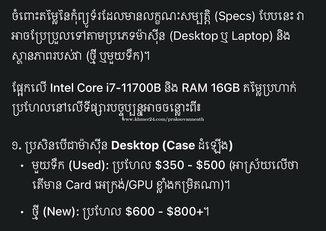 Contact Info: Please don't forget to mention that you found this ad on khmer24.com.