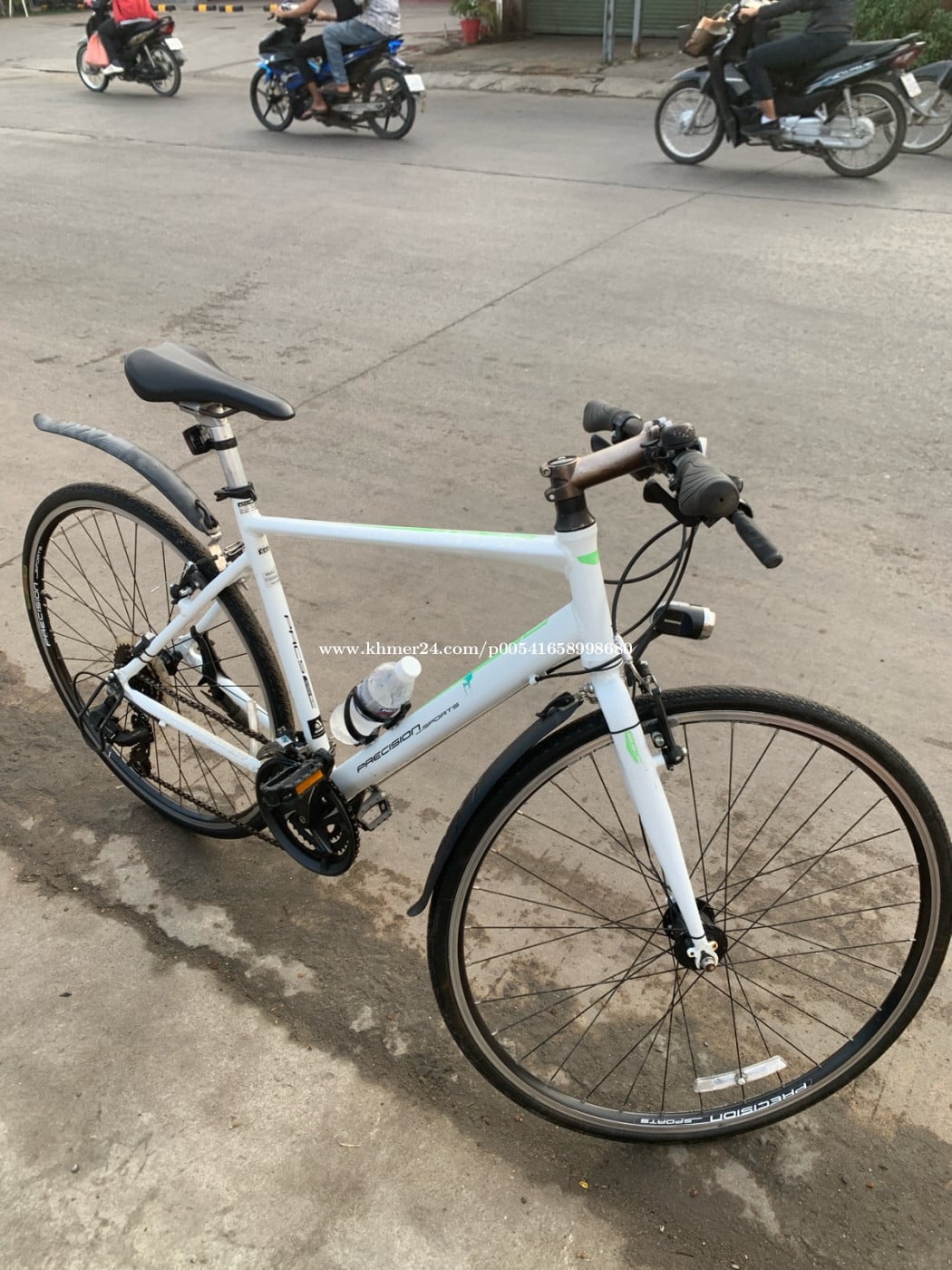 ស្អាតណាស់ ម៉ាក Precision sports រង្វង់(28cx700) ភ្លើងបំភ្លឺមុខក្រោយ ជិះហាត់ប្រាណ និង ជិះទៅសាលា ( អាចជិះបានដល់ 120Kg កំពស់ 1,50m ឡើង) មកមុនបានមុនបងៗ 110$ Very nice, Precision sports brand, wheel (28cx700), front and rear lights, for exercise and school (can ride up to 120Kg, height 1.50m and up), first come, first served, 110$ negotiable