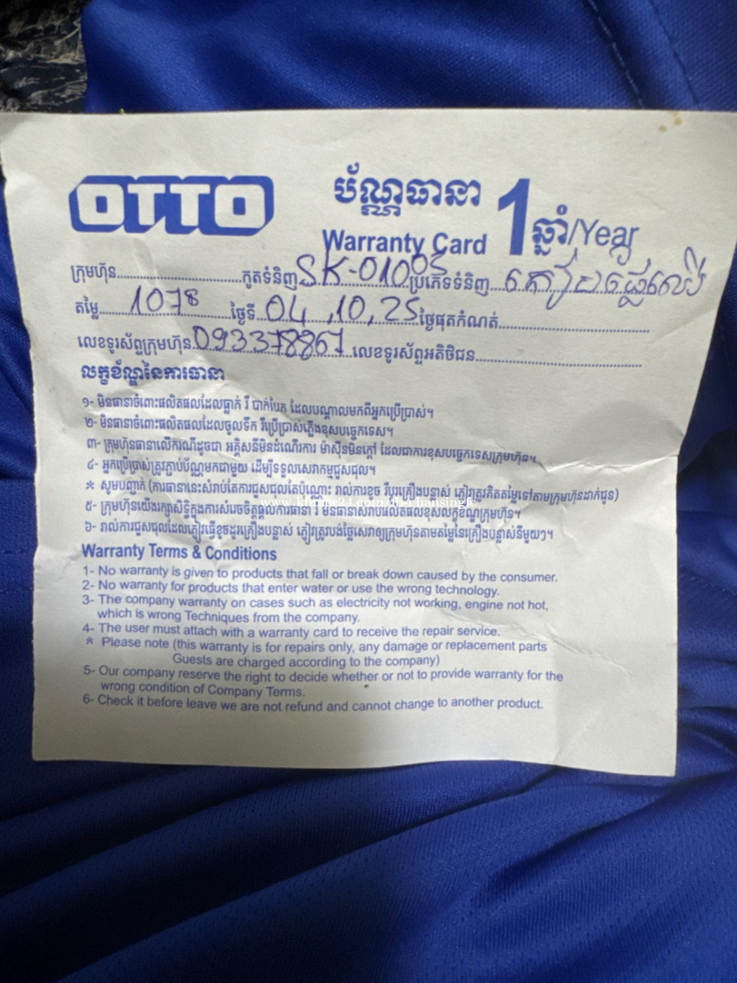 ទិញមកប្រើបានតែ មួយដងគត់ ថាទុករកសុី តែអត់ពេល ម៉ាសិននៅល្អទាំងអស់ និងនៅមានលិខិតធានា 1 ឆ្នាំ