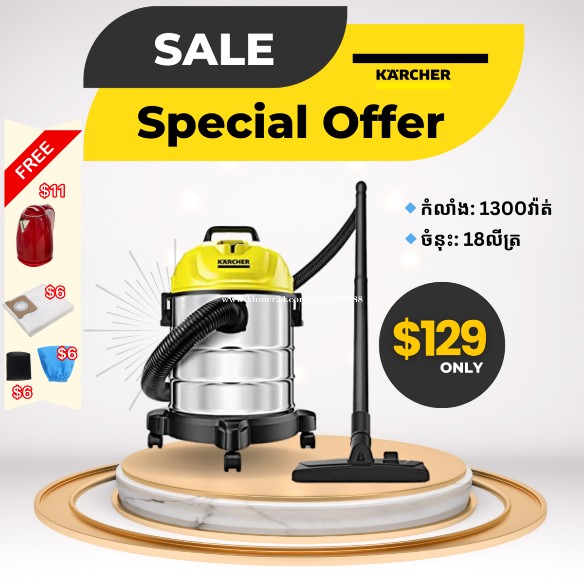 ឈុតប្រមូសិនថ្មី , with special promotion offer for Karcher Products🇩🇪 ហាងសេតធើមានការផ្តល់ជូនឈុតប្រមូសិនពិសេស ទៅលើគ្រប់ប្រភេទម៉ាសុីន ផលិតផលម៉ាកKARCHER🇩🇪ម៉ាសុីនបូមធូលីខ្នាតកណ្តាល WD1: 🔹ចំនុះ: 18L 🔹Power : 1300watt 💢តម្លៃ:$129 +ឈុតថែម 4មុខ 💯 💢បូកការធានា1ឆ្នាំ💯 💥តម្លៃដកឈុតប្រមូសិន ចុះជូនបាន 15% —————————————————————— ❓#86BEo, ផ្លូវ199, ចំការមន, ភ្នំពេញ (ចំហៀងក្រោយពេទ្យរុស្សី) 📲017444xxxClick To Call (Telegram) 📲093575xxxClick To Call 📲089727xxxClick To Call (telegram)