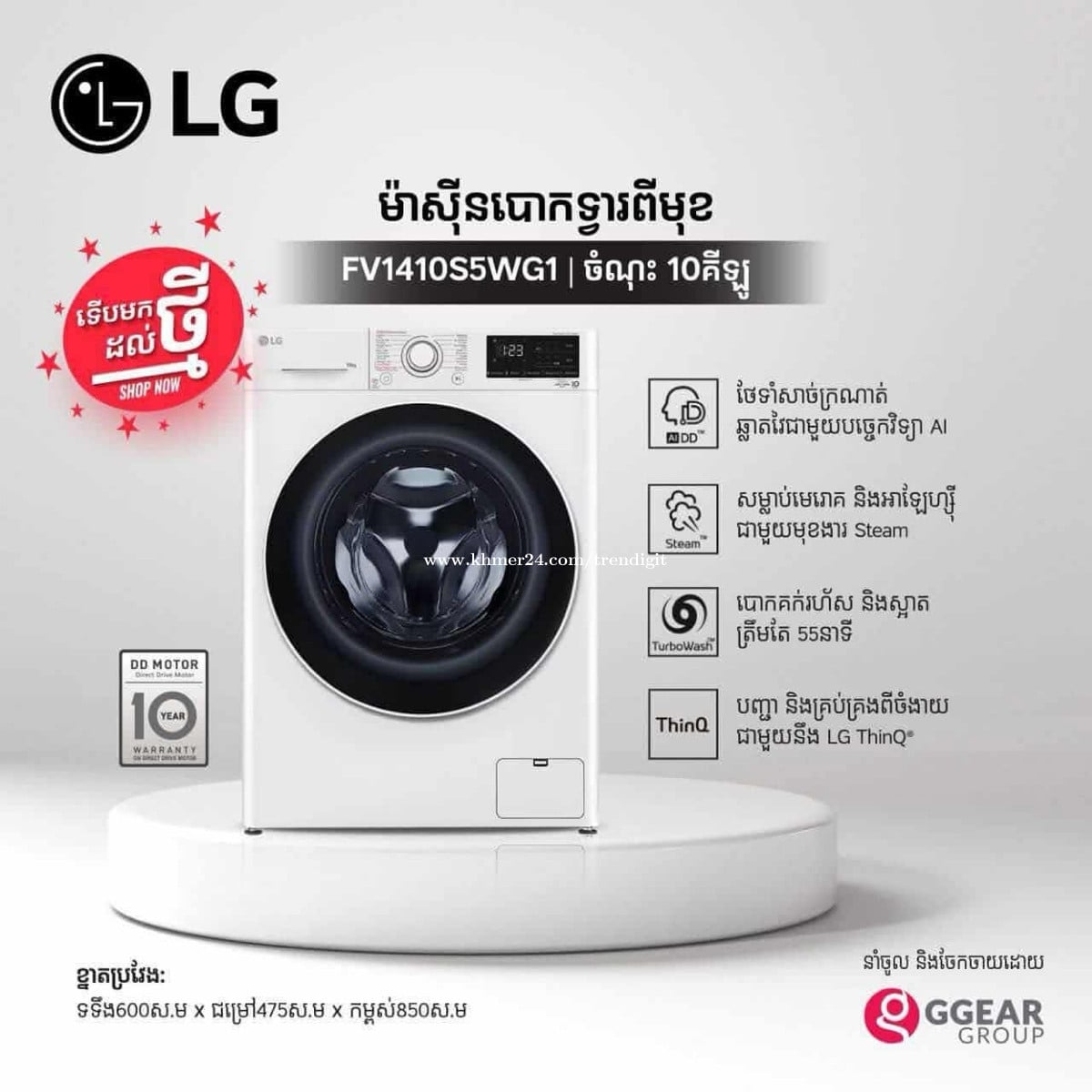 ម៉ាសុីនបោកគក់ទ្វាពីមុខចំណុះ 10 kg របស់ម៉ាក LG - FV1410S5WG1 🫧❤️ លក្ខណៈពិសេស: ✨ ថែទាំសាច់ក្រណាត់ ឆ្លាតវៃជាមួយបច្ចេកវិទ្យា AI ✨ សម្លាប់មេរោគ និងអាឡែហ្ស៊ី ជាមួយមុខងារ Steam ✨ បោកគក់រហ័ស និងស្អាត ត្រឹមតែ 55នាទី ✨ បញ្ជា និងគ្រប់គ្រងពីចំងាយ ជាមួយនឹង LG ThinQ លោកអ្នកអាចស្វែងរកបាននៅ Trendigit-ដ្រេនឌីជីឌ! សូមចុចត្រង់នេះសម្រាប់ព័ត៌មានបន្ថែម 098877xxxClick To Call (Telegram) https://t.me/Trendigit_yi