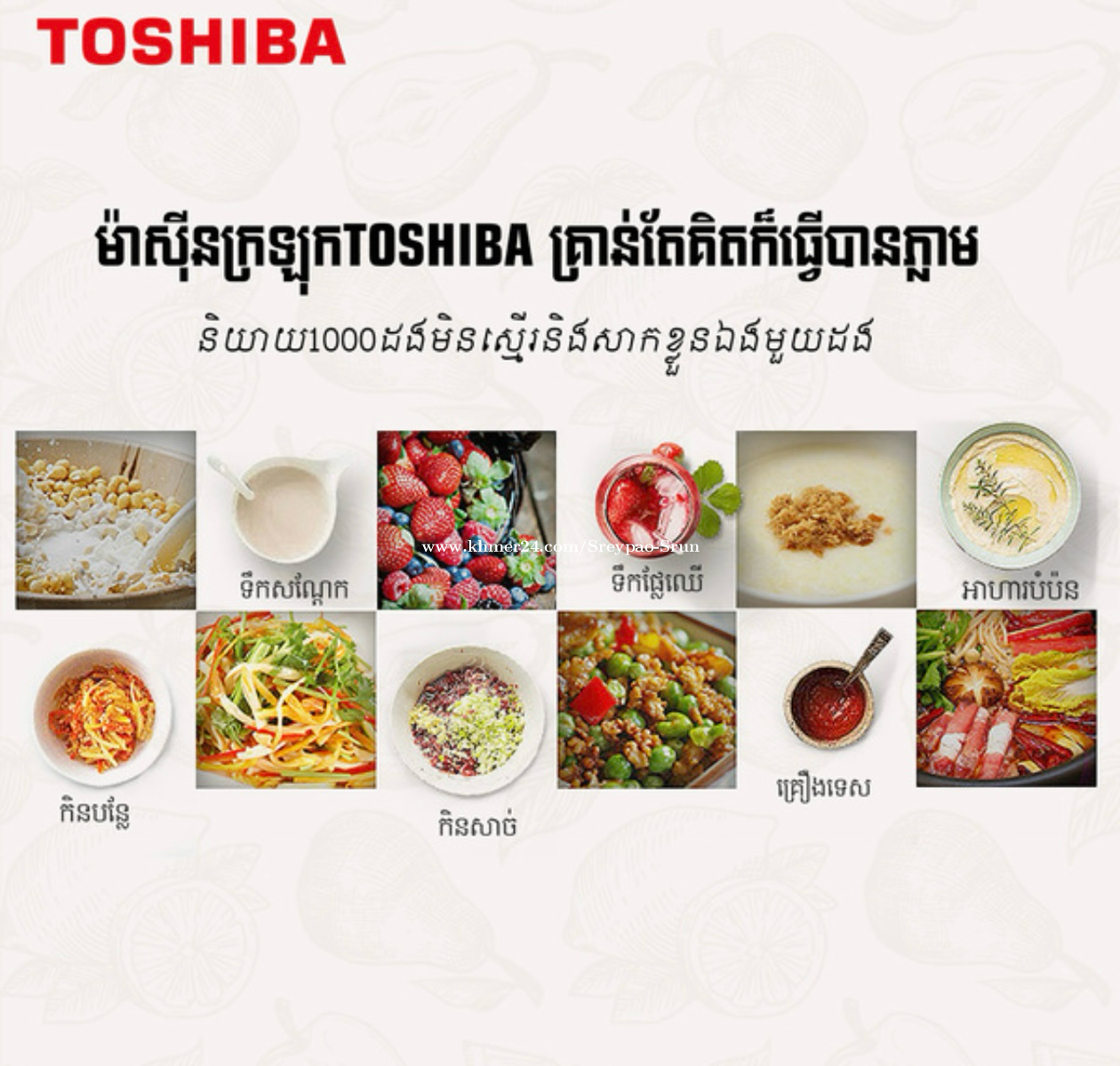 ម៉ាស៊ីនក្រឡុក Toshiba BL-70PR2RKH មានលក្ខណៈពិសេសដូចជា៖ - មានចំណុះ 1.5L - សម្លេងស្ងាត់ល្អ - អាចប្រេីប្រាស់សម្រាប់ក្រឡុកផ្លែឈេី ទឹកសណ្ដែក កិនសាច់ កិនគ្រឿងទេស កាហ្វេ ម្រេចបាន 🥰🥰🥰 PRODUCT DETAILS Capacity 1.5L Power: 450W Weight: 3.5KG Gross Weight: 4.2KG Product Dimension: 161 x 161 x 398mm Gift Box Dimension: 513 x196 x 312mm Accessory: 0.4L Grinder Cup / SUS Filter Self Clean Function 3-Speed Control 5 Levels of Grinding Force Has a Safety Function The Blade has 6 that Grind Well Easy to Remove Out for Wash មានលក់នៅហាង Gech Shop ធានាផលិតផលក្រុមហ៊ុន តម្លៃសមរម្យ Tel: 011867xxxClick To Call ➡️📥📩 https://t.me/GechShop_PaoPao #ម៉ាស៊ីនក្រឡុក #blender #Toshiba #easylife #ងាយស្រួលប្រើប្រាស់ #កិនគ្រឿង #កិនគ្រឿងទេស #ម៉ាស៊ីនកិនកាហ្វេ