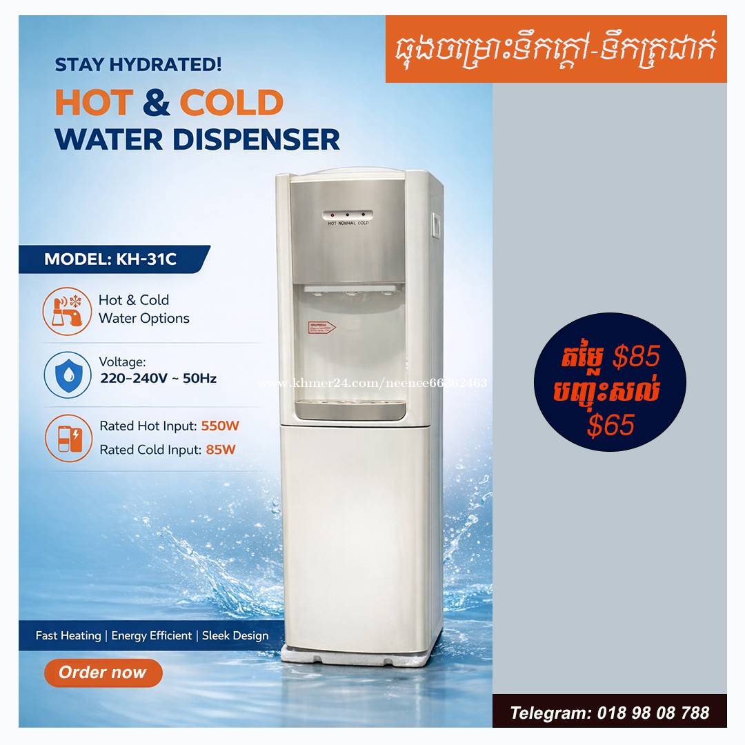 ម៉ាស៊ីនចម្រោះទឹកក្ដៅ-ទឹកត្រជាក់ លក្ខខណ្ឌ៖ថ្មី តង់ស្យុងប្រើប្រាស់៖220V-240V,50Hz