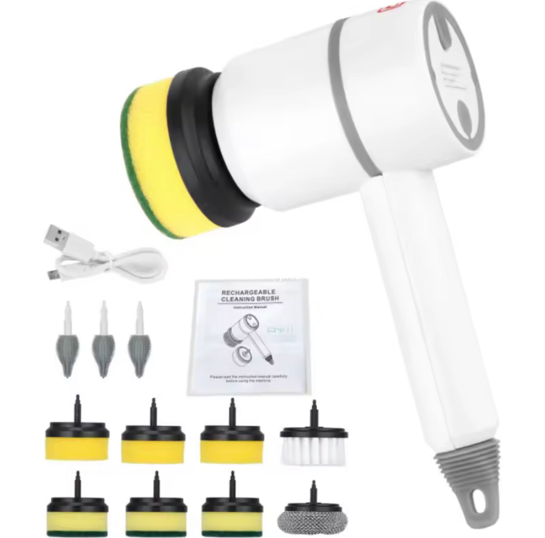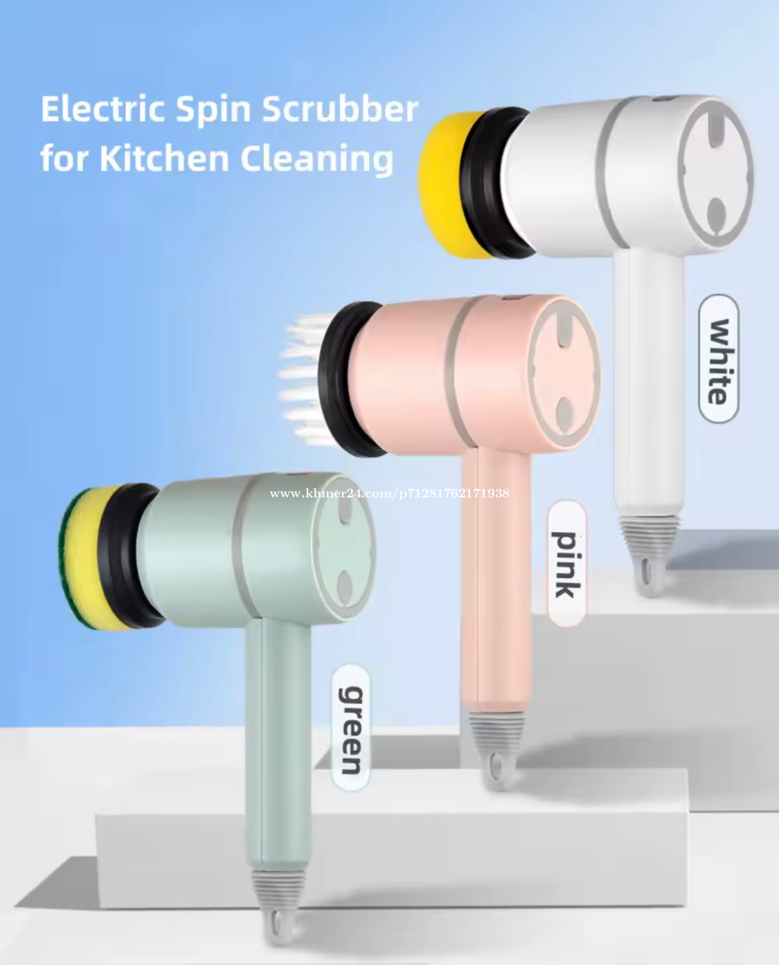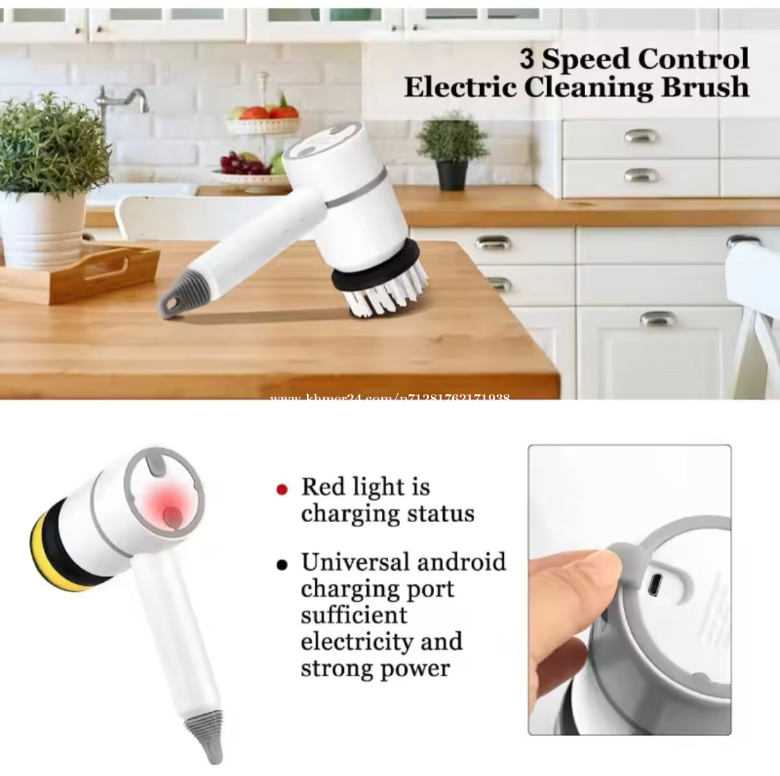 ម៉ាស៊ីនជូតអគ្គិសនីពហុមុខងារ មានថាមពលសាកឡើងវិញ បានមកជាមួយក្បាលជូត 4 ប្រភេទ អាចផ្លាស់ប្តូរបាន សម្រាប់សម្អាតបន្ទប់ទឹក ផ្ទះបាយ ឡ ចាន និងជាន់។