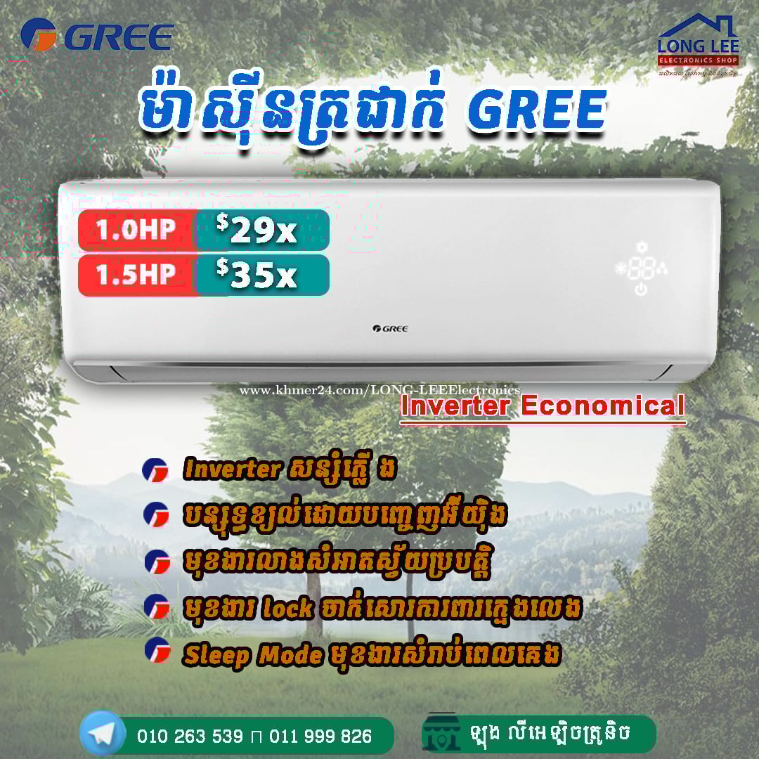 📣 ⭕️ ម៉ាស៊ីនត្រជាក់ Gree Inverter Eco ✅ Inverter Eco ស៊េរីថ្មីស៊ីភ្លើងតិច ✅ រូបរាលស្អាតធន់រឹងមាំ ✅ កំចាត់ក្លិន និងមេរោគ 🚫ធន់ខ្លាំង និងស៊ីភ្លើងតិច ម៉ាកចិនមែន តែមិនមែនចិន copy ទេ គឺក្រុមហ៊ុនចិនសុទ្ធ ១០០% បើជនជាតិចិននៅខ្មែរវិញគាំទ្រ ៩០% ហើយបើម៉ាក់ ចិន copy ចិនក៏មិនទិញប្រើដែល ជម្រាបបងប្អូនអតិថិជនប៉ុននឹង៕ ចង់ជ្រាប់ច្បាស់ 👉 telegram ខ្ញុំ https://t.me/LongLeeElectronics ចង់មើលផ្ទាល់ 👉 ហ៊ាងខ្ញុំ https://maps.app.goo.gl/DnkUBwyx9hk6uHobA?g_st=ipc ________________ ☎️ លេខទូរស័ព្ទ 010263xxxClick To Call Telegram Link https://t.me/LongLeeElectronics 📲 ចូលមើល Telegram Gruop ដើម្បីមើលពត៍មាន តំលៃ របស់ផលិតផលផ្សេងៗ : https://t.me/+uONgLe-vcUYzYjll 📺 Telegram Channel https://t.me/+siLPdp8h0_c3ZTA1 🏘️ ផ្ទះលេខ 178 កែង113 ភូមិព្រែកសំរោង ក្រុងតាខ្មៅ ខេត្តកណ្តាល។ 📍Google Map https://maps.app.goo.gl/zm1fG7HWc1Si4D936.... #Greeair #GreeAirConditioner #greeairconditioners