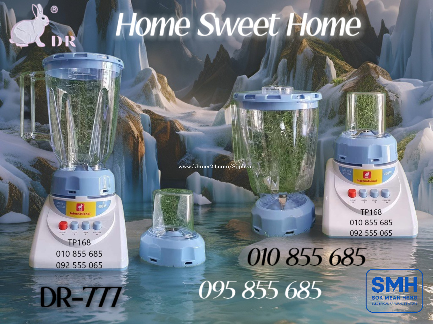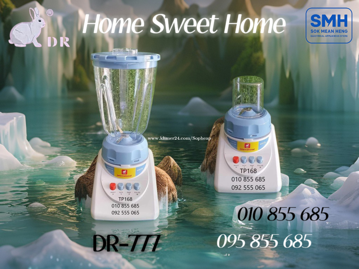 ម៉ាស៊ីនទឹកក្រឡុក International DR-Series Blender (NEW) . - ផលិតផលប្រទេសថៃ / Product of Thailand - អាចកិនស្ងួត និងសើម / Dry and Wet Mill (2 in 1) - ងាយស្រួលសំអាត / Easy for Clean - Control Buttons: Reset, Stop, Pulse, Low, High. . 1. ម៉ាស៊ីនទឹកក្រឡុក International DR-777 Blender - Capacity: 1.5L - Speed: 2 Speeds + PULSE - Power / Vol: 400W / 220V ~ 50Hz * តំលៃ / Price: 16.9$ . 2.ម៉ាស៊ីនទឹកក្រឡុក International DR-888 Blender - Capacity: 1.5L - Speed: 3 Speeds + PULSE - Power / Vol: 400W / 220V ~ 50Hz * តំលៃ / Price: 22.9$ . 3. ម៉ាស៊ីនទឹកក្រឡុក International DR-999 Blender - Capacity: 1.5L - Speed: 2 Speeds + PULSE - Power / Vol: 600W / 220V ~ 50Hz - កែវថ្ម / អាចគិន និងក្រឡុកទឹកកកបាន - Material: Glass Jar / Ice Grinder * តំលៃ / Price: 32.9$ . SMH / សុខ មាន ហេង / Sok Mean Heng ហាងលក់គ្រឿងប្រើប្រាស់អគ្គិសនី / Electrical Appliances Store . Phone / Telegram (សេវាកម្មរហ័ស / Fast Service): Smart: 010855xxxClick To Call / https://t.me/Annsopheap Cellcard: 095855xxxClick To Call / http://t.me/Annsopheap095 . អាស័យដ្ឋាន / Address: No. 392, MaoTseToung Blvd. (St. 245), Phnom Penh. (Near P Jolie Beauty Center) . ផែនទី / Maps: https://www.google.com/maps?q=11.55595844757693,104.90165490657091&15 . #ម៉ាស៊ីនទឹកក្រឡុក #ទឹកក្រឡុក #ថៃ #គ្រឿងអគ្គីសនី #គ្រឿងប្រើប្រាស់អគ្គិសនី #InternationalDR #Blender #Grinder #Mixer #Thailand #DR-777 #DR-888 #DR-999 #SMH #Appliances #ElectricAppliances #ElectricalAppliances #ApplianceStore #Promotion #Discount #Save #Free #New