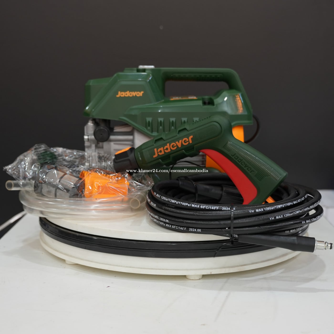 ម៉ាស៊ីនបាញ់ទឹកសម្ពាធខ្ពស់ JADEVER 1200W (JDHP1A12) តម្លៃ៖ $78.00 សភាព៖ ថ្មី 100% មានប្រអប់ដើម ប្រភេទ៖ ម៉ាស៊ីនបាញ់ទឹកសម្ពាធខ្ពស់ ម៉ាក៖ JADEVER កម្លាំងម៉ូទ័រ៖ 1200W ពណ៌នាផលិតផល ម៉ាស៊ីនបាញ់ទឹកសម្ពាធខ្ពស់ JADEVER 1200W មានកម្លាំងល្អ ទំហំតូច កាន់ងាយ និងងាយស្រួលដឹកជញ្ជូន។ សមស្របសម្រាប់ការលាងឡាន ម៉ូតូ កម្រាល ជញ្ជាំង និងសម្ភារៈក្រៅផ្ទះផ្សេងៗ។ ម៉ូទ័ររឹងមាំ ប្រើប្រាស់បានយូរ និងសន្សំថាមពល។ លក្ខណៈបច្ចេកទេស កម្លាំង៖ 1200W វ៉ុលភ្លើង៖ 220–240V / 50–60Hz សម្ពាធទឹកអតិបរមា៖ ប្រហាក់ប្រហែល 90 Bar បរិមាណទឹកបាញ់៖ ប្រហាក់ប្រហែល 5.0 លីត្រ/នាទី ប្រភេទម៉ូទ័រ៖ Electric Motor ពណ៌៖ បៃតង / ទឹកក្រូច កញ្ចប់៖ ប្រអប់ JADEVER ដើម អ្វីដែលមានក្នុងប្រអប់ ម៉ាស៊ីនបាញ់ទឹក JADEVER 1200W កាំភ្លើងបាញ់ទឹក ខ្សែទឹកសម្ពាធខ្ពស់ ខ្សែភ្លើង ឧបករណ៍ភ្ជាប់ផ្សេងៗ សាកសមសម្រាប់ លាងឡាន និងម៉ូតូ លាងកម្រាល និងជញ្ជាំង លាងឧបករណ៍ និងសម្ភារៈក្រៅផ្ទះ ប្រើប្រាស់ក្នុងគេហដ្ឋាន និងការងារទូទៅ