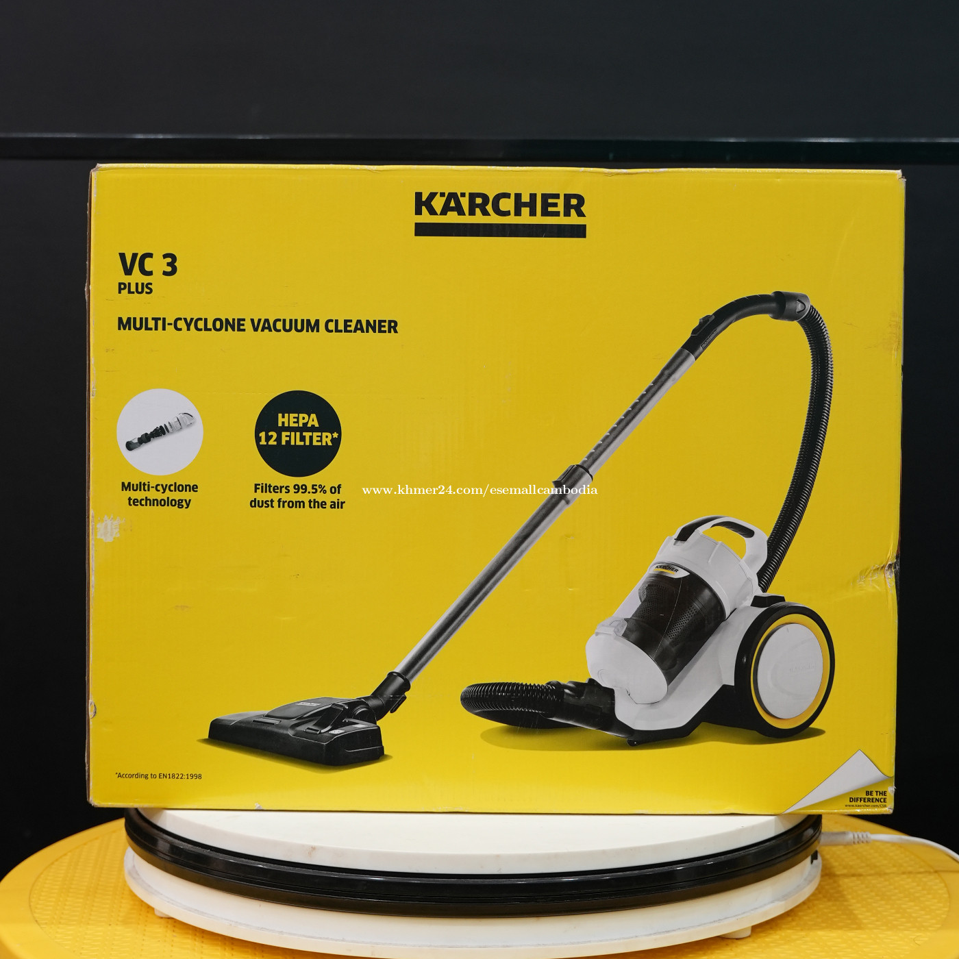 ម៉ាស៊ីនបូមធូលី KÄRCHER VC 3 PLUS (Multi-Cyclone) (1.198-050.0) 💰 តម្លៃ៖ $165.00 📦 សភាព៖ ថ្មី 100% (មានប្រអប់ដើម) 🏷️ ម៉ាក៖ KÄRCHER (Germany) ⚡ ប្រភេទ៖ ម៉ាស៊ីនបូមធូលីគ្មានថង់ (Bagless Vacuum Cleaner) ⭐ ពណ៌នាផលិតផល KÄRCHER VC 3 Plus គឺជាម៉ាស៊ីនបូមធូលីបច្ចេកវិទ្យា Multi-Cyclone មិនចាំបាច់ប្រើថង់ បូមធូលីខ្លាំង និងស្អាត។ បំពាក់ HEPA 12 Filter អាចចម្រោះធូលីបានរហូតដល់ 99.5% ជួយរក្សាខ្យល់ក្នុងផ្ទះឲ្យស្អាត និងសុខភាពល្អ។ សាកសមសម្រាប់ ផ្ទះ, អាផាតមិន, ការិយាល័យ, ជាពិសេសអ្នកមានកូនតូច ឬអ្នកងាយរងអាឡែហ្ស៊ី។ ⭐ លក្ខណៈពិសេស • បច្ចេកវិទ្យា Multi-Cyclone – មិនចាំបាច់ប្រើថង់ • HEPA 12 Filter – ចម្រោះធូលីល្អខ្ពស់ (99.5%) • កម្លាំងបូមខ្លាំង ប៉ុន្តែប្រើអគ្គិសនីសន្សំ • ប្រអប់ដាក់ធូលីថ្លា មើលឃើញងាយសម្អាត • កង់ធំ រុញងាយ មិនខូចកម្រាល • រចនាម៉ូដស្អាត រឹងមាំ គុណភាពអាល្លឺម៉ង់ 📦 គ្រឿងបន្លាស់ក្នុងប្រអប់ • បំពង់បូម (Hose) • ដំបងបូមលោហៈ • ក្បាលបូមកម្រាល / ក្បាលបូមធូលី • ក្បាលបូមជ្រុង និងជ្រុងតូច • HEPA Filter (ដំឡើងរួច)