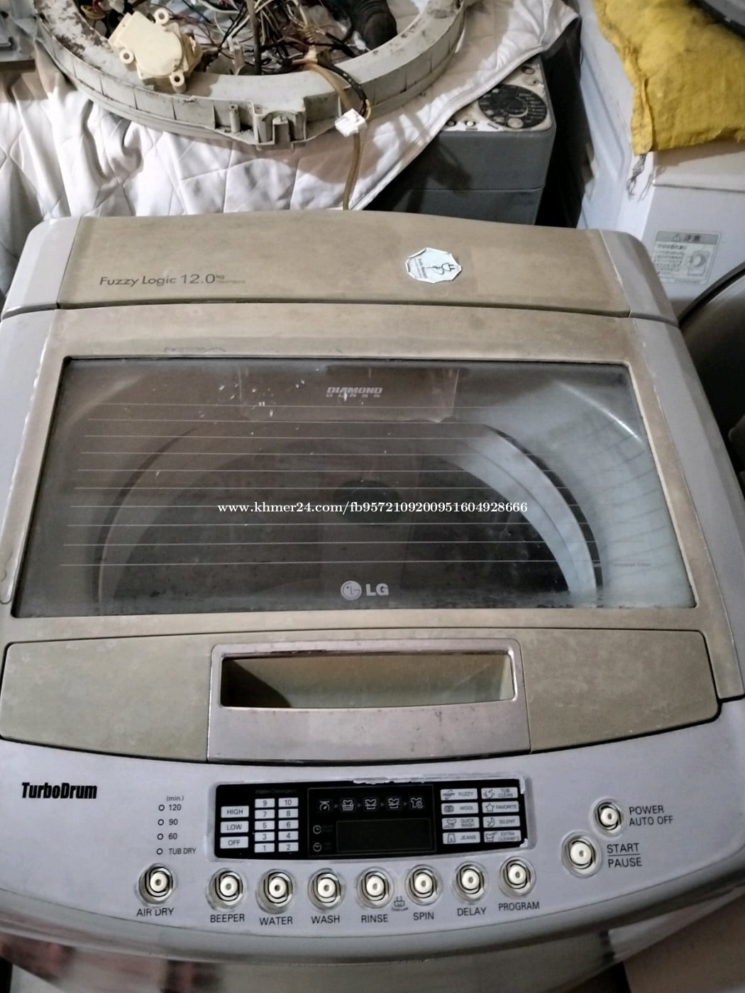 ម៉ាស៊ីនបោកម៉ាក lg 12 គីឡូលក់ម៉ាស៊ីននៅដំណើរការធម្មតាបោកស្អាតតម្លៃ110$