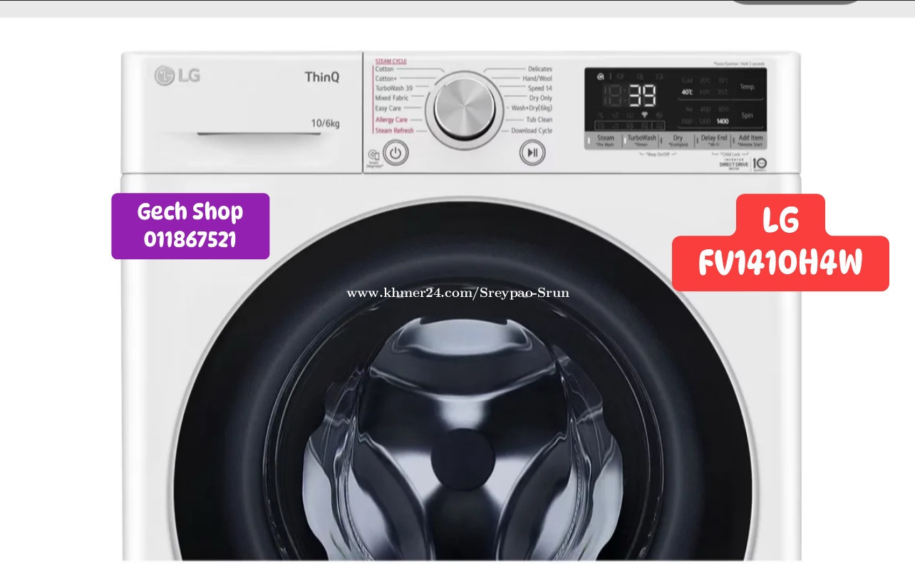 ម៉ាស៊ីនបោក សម្ងួត Wash and Dry Machine LG FV1410H4W បោក10Kg សម្ងួត7Kg មានគុណភាពខ្ពស់ មានក្នុងស្តុកស្រាប់ មានធានារយៈពេល១ឆ្នាំ មានលក់នៅហាង Gech Shop ធានាផលិតផលក្រុមហ៊ុន តម្លៃសមរម្យ Tel: 011867xxxClick To Call ➡️📥📩 https://t.me/GechShop_PaoPao #ម៉ាស៊ីនសម្ងួត #ទូរសម្ងួត #dryermachine #ម៉ាស៊ីនបោកគក់ #ម៉ាស៊ីនបោកគក់ឆ្លាតវៃ #ម៉ាស៊ីនបោកខោអាវ #washmachine #washingmachine #LG