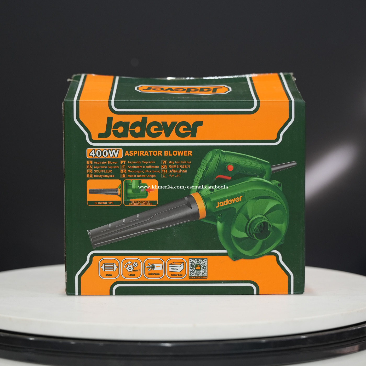 ម៉ាស៊ីនផ្លុំខ្យល់ JADEVER 400W (Aspirator Blower) (JDAB15401) ប្រភេទផលិតផល: ឧបករណ៍អគ្គិសនី / ឧបករណ៍សម្អាត ម៉ាក: JADEVER ម៉ូដែល: 400W Aspirator Blower ពណ៌នាផលិតផល ម៉ាស៊ីនផ្លុំខ្យល់ JADEVER 400W គឺជាឧបករណ៍អគ្គិសនីសម្រាប់ផ្លុំធូលី និងកាកសំណល់ផ្សេងៗ ប្រកបដោយប្រសិទ្ធភាព។ មានកម្លាំងម៉ូទ័រខ្លាំង បង្កើតលំហូរខ្យល់ខ្លាំង សមស្របសម្រាប់ប្រើនៅក្នុងរោងជាង ការដ្ឋានសំណង់ ផ្ទះ ឬការសម្អាតឧបករណ៍អេឡិចត្រូនិច។ រចនាឡើងឱ្យមានទំហំតូច កាន់ងាយ និងប្រើប្រាស់បានយូរ។ លក្ខណៈបច្ចេកទេស (Specifications) កម្លាំងម៉ូទ័រ៖ 400W ប្រភពថាមពល៖ អគ្គិសនី AC មុខងារ៖ ផ្លុំខ្យល់ បរិមាណខ្យល់៖ ប្រហែល 3.0 ម៉ែត្រគូប/នាទី ល្បឿនមិនមានផ្ទុក៖ ដល់ 14,000 ជុំ/នាទី វ៉ុល៖ 220–240V ~ 50/60Hz សម្ភារៈតួ៖ ប្លាស្ទិករឹងមាំ ពណ៌៖ បៃតង / ទឹកក្រូច ការវេចខ្ចប់៖ ប្រអប់ពណ៌ លក្ខណៈពិសេស (Features) ម៉ូទ័រ 400W ផ្តល់កម្លាំងផ្លុំខ្លាំង ទំហំតូច និងទំងន់ស្រាល កាន់ងាយ សម្អាតធូលី និងកាកសំណល់បានលឿន ដងកាន់រចនាឡើងឱ្យកាន់ស្រួល តួរឹងមាំ សមស្របសម្រាប់ប្រើប្រាស់ប្រចាំថ្ងៃ អាចប្តូរ Carbon Brush បាន មានបំពង់ផ្លុំភ្ជាប់មកជាមួយ