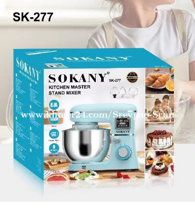 ម៉ាស៊ីនវ៉ៃនំ Stand Mixer Sokany SK-277 ចំណុះ8L កម្លាំង 1800W ពណ៌ស្អាតគួរអោយចង់ប្រេីប្រាស់ មានធានារយៈពេល៣ខែសម្រាប់ការជួសជុល មានក្នុងស្តុកស្រាប់ 😍😍 មានលក់នៅហាង Gech Shop ធានាផលិតផលក្រុមហ៊ុន តម្លៃសមរម្យ Tel: 011867xxxClick To Call ➡️📥📩 https://t.me/GechShop_PaoPao #ម៉ាស៊ីនវ៉ៃនំ #standmixer #SOKANY