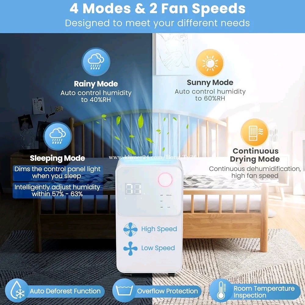 This is a Lotte LDH-7000 dehumidifier. It is designed to remove excess moisture from indoor air, helping to prevent issues like mold and mildew. The unit can extract and collect up to 7 litres of water every 24 hours. It features multiple modes, including a quiet 'sleep mode' which dims lights and adjusts humidity levels. The device is equipped with caster wheels for easy portability between rooms. 0716333xxxClick To Call