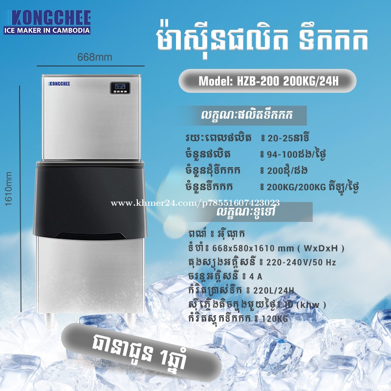 ខ្នាតគ្រួសារ 20YLR Dispenser 3in1(20kg/24h) 230$ 20FS (20kg/24h) 188$ ខ្នាតអជីវកម្ម HZB-50 (50kg/24h) 540$ Free Install HZB-65 (65Kg/24h) 635$ Free Install HZB-90 (90Kg/24h) 750$ Free Install HZB-120 (120kg/24h) 910$ Free Install HZB-200 (200kg/24h) 1800$ Free Install HZB-300 (300kg/24h) 2800$ Free Install HZB-500 (500kg/24h) 3600$ Free Install (Warranty One Year)