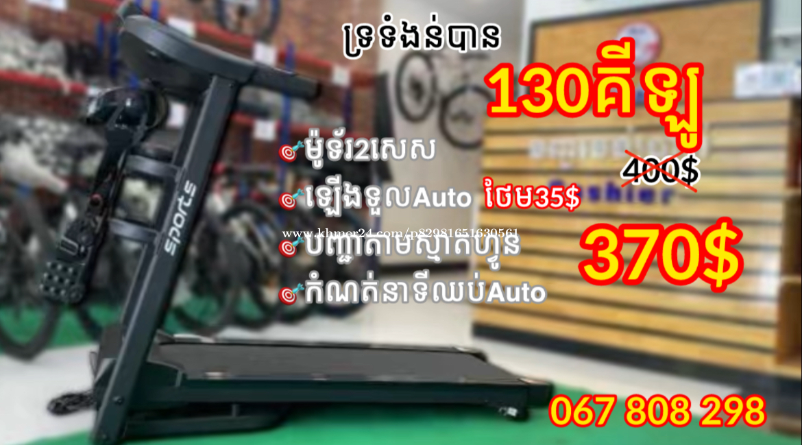🫰😻តម្លៃ 525$ចុះជូន 35$ ដឹកដល់ដៃទើបទទួលប្រាក់ ~~~ ❤ 🙂 ❤ ~~ 🫶🏻 អាចទ្រទំងន់បានដល់ 140គីឡូ 🫶🏻 ល្បឿនរត់ : 1.0-16 Km/h 🫶🏻មានមុខងារឡើងទូលអូតូ 🫶🏻 កម្លាំងម៉ូទ័រ 3សេស ម៉ាស៊ីនស្ងាត់ល្អ 🫶🏻 មានApp តាមដានរបាយការណ៏រត់ 🫶🏻 កំណត់ពេលវេលារត់ ឈប់អូតូ 🫶🏻 មានBluetooth ស្តាប់ចម្រៀងបាន 🫶🏻 ទំហំផលិតផល : កំ134cm*ប162cm*ទ 72cm 🫶🏻 មានបង្ហាញពី ✅ នាទីរត់ ✅ ចម្ងាយគីឡូរត់ ✅ ល្បឿនរត់ ✅ ចង្វាក់បេះដូង ✅ និងកាឡូរី 🆓ម៉ាស៊ីនម៉ាស្សាក្បាលពោះ ដុំដែក១គូរ របារនិងធ្នាក់កាច់ក្បាលពោះ 👨🔧ធានាជូនរយះពេល១ឆ្នាំ ម៉ាស៊ីនមានបីទំហំ 325$ ទំហំ (កំពស់ 120cm, បណ្តោយ124cm, ទទឹង62cm) 370$ ទំហំ (កំពស់ 120cm, បណ្តោយ140cm, ទទឹង70cm) 490 ទំហំ (កំពស់ 134cm, បណ្តោយ162cm, ទទឹង72cm)