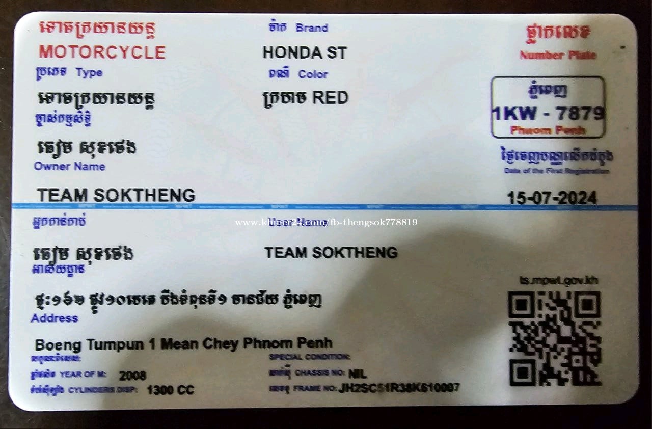 ម៉ូតូHonda ST1300ccមានផ្លាកលេខកាតគ្រីត្រឹមត្រូវឈ្មោះម្ចាស់ដើមលក់តម្លៃចចារបាន 本田ST1300cc摩托车有正确证件柬埔寨首主名字出售中 价格可以谈的 🌐https://maps.app.goo.gl/YidJdDjYXeygsmxq6 Telegram 012832xxxClick To Call/016772xxxClick To Call