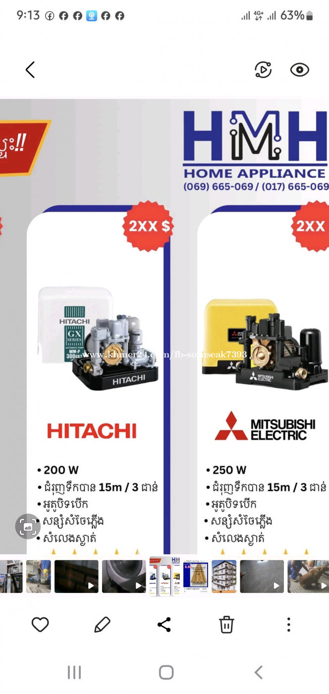 ម៉ូទរ័ជុំរុញទឹកឡើងឬចុះតាមតំរូវការ នៅថ្មី90%សុំនុំស្រុីន HITACHIមានសំលេងស្ងាត់ល្អ 150$ អាចសាសួរ010607xxxClick To Call ឬ012607xxxClick To Call