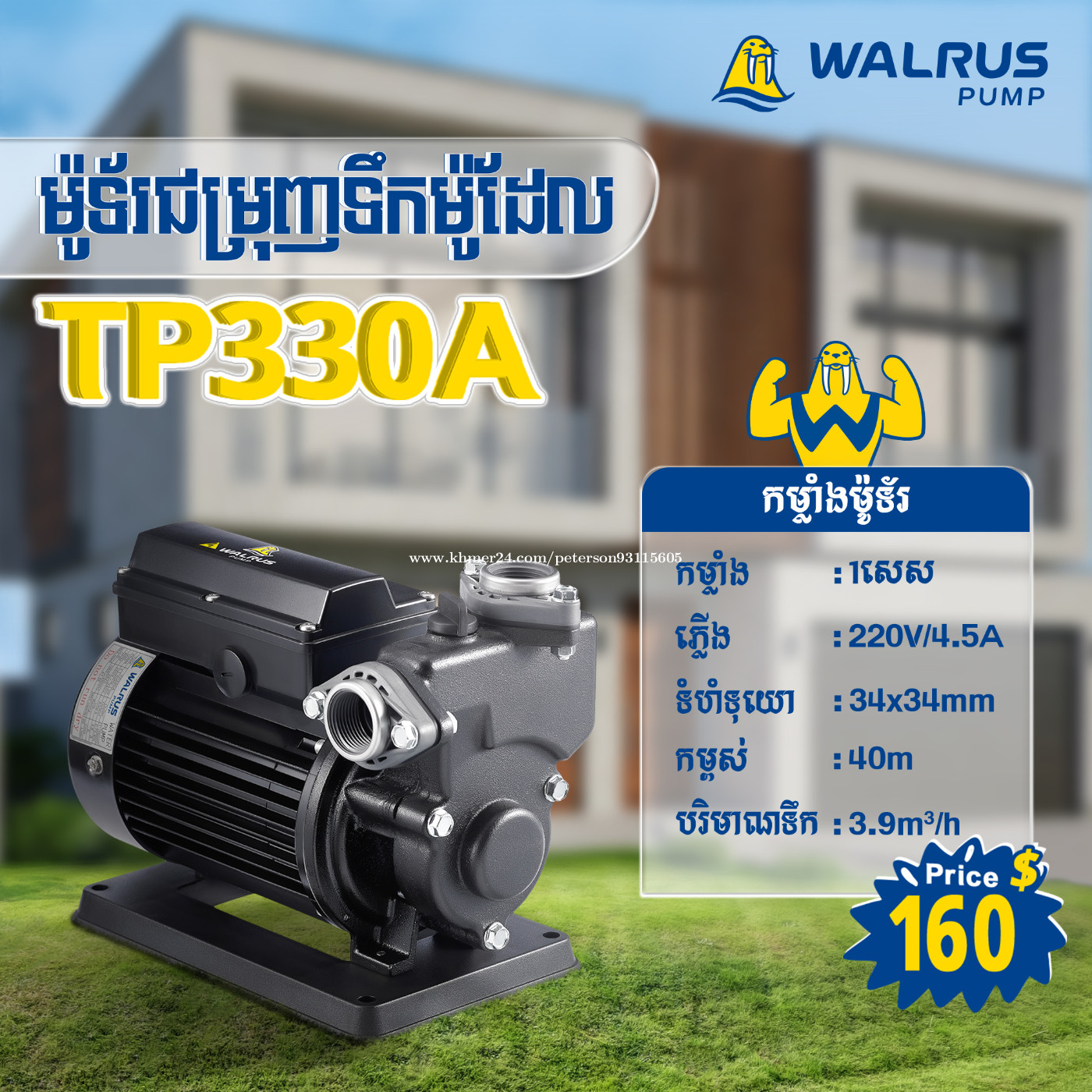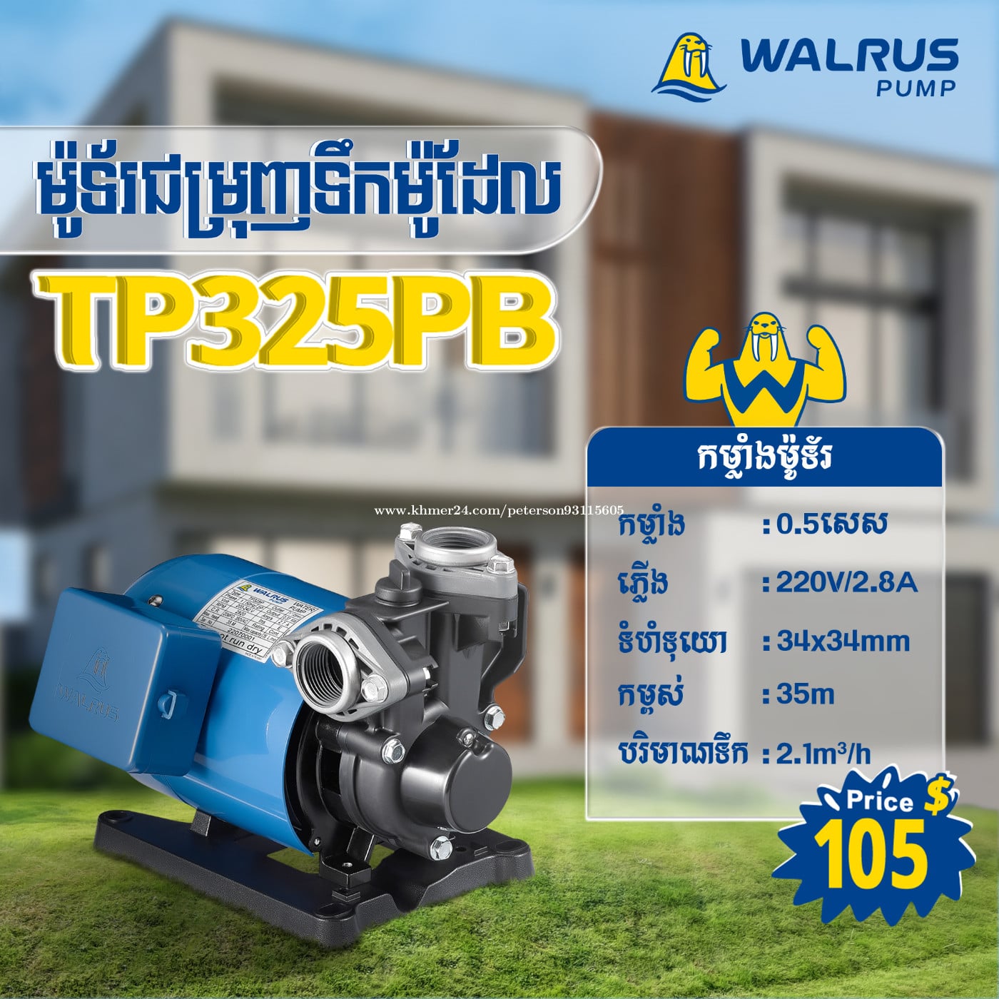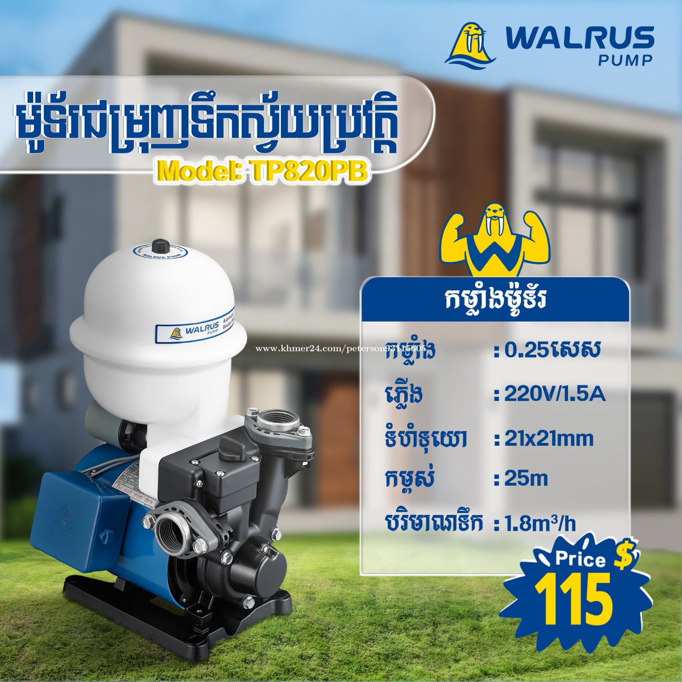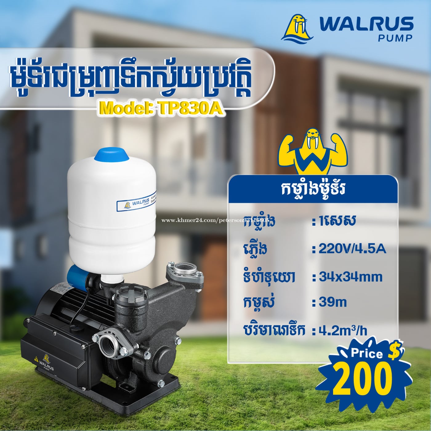 ម៉ូទ័រជម្រុញទឹកដោយស្វ័យប្រវត្តិម៉ាក Walrus សម្លេងស្ងាត់ កម្លាំងទឹកខ្លាំង សន្សំសំចៃច្រើនទ្វេដង ការពារការលិចជ្រាប និងសម្លាប់មេរោគ🦠💪 ✅ មានការធានារយៈពេល1ឆ្នាំ 👉 សម្រាប់ព័ត៌មានបន្ថែមសូមទំនាក់ទំនង៖ 📲 0969376xxxClick To Call / 012908xxxClick To Call