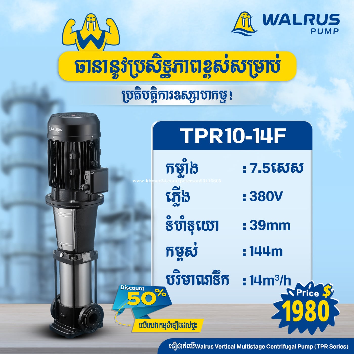 ម៉ូទ័រជម្រុញទឹកដោយស្វ័យប្រវត្តិម៉ាក Walrus សម្លេងស្ងាត់ កម្លាំងទឹកខ្លាំង សន្សំសំចៃច្រើនទ្វេដង ការពារការលិចជ្រាប និងសម្លាប់មេរោគ🦠💪 Discount: 50% លើសេវាកម្មដំឡើងដល់ផ្ទះ ✅ មានការធានារយៈពេល1ឆ្នាំ 👉 សម្រាប់ព័ត៌មានបន្ថែមសូមទំនាក់ទំនង៖ 📲 0969376xxxClick To Call / 012908xxxClick To Call