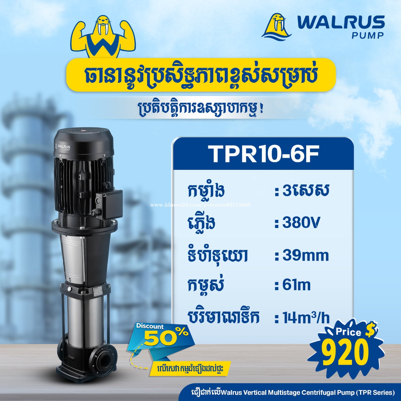 ម៉ូទ័រជម្រុញទឹកដោយស្វ័យប្រវត្តិម៉ាក Walrus សម្លេងស្ងាត់ កម្លាំងទឹកខ្លាំង សន្សំសំចៃច្រើនទ្វេដង ការពារការលិចជ្រាប និងសម្លាប់មេរោគ🦠💪 Discount: 50% លើសេវាកម្មដំឡើងដល់ផ្ទះ ✅ មានការធានារយៈពេល1ឆ្នាំ 👉 សម្រាប់ព័ត៌មានបន្ថែមសូមទំនាក់ទំនង៖ 📲 0969376xxxClick To Call / 012908xxxClick To Call