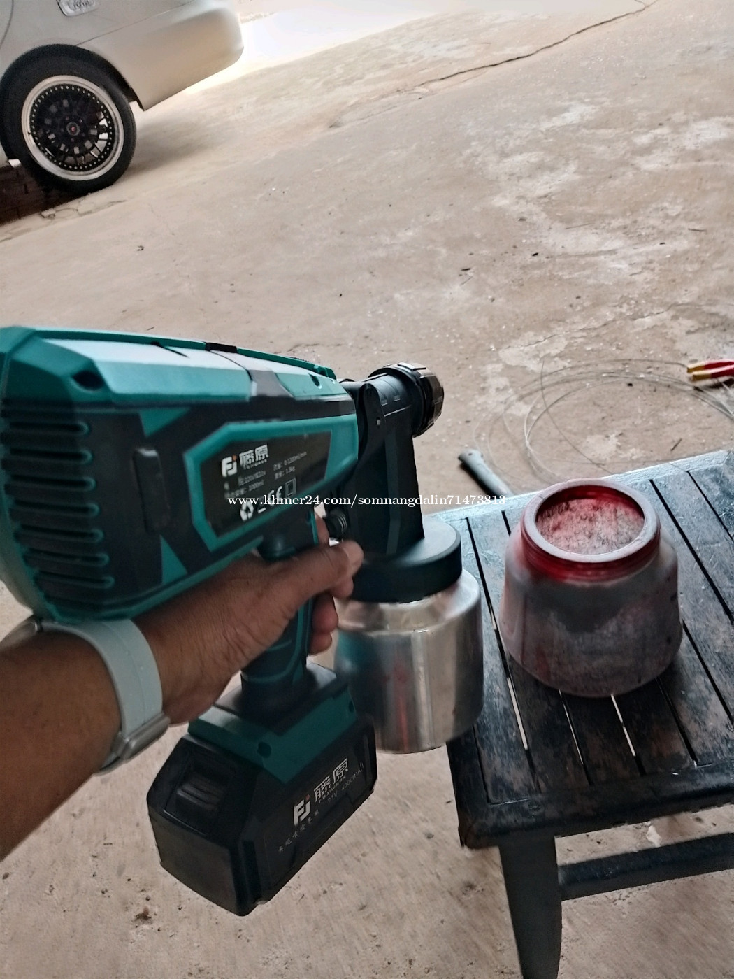 ( ដូរជាមួយម៉ូទ័របាញ់វីស ) ម៉ូទ័របាញ់ថ្នាំងាយស្រួលក្នុងការប្រើប្រាស់សម្រាប់គេហដ្ឋាននិងជាងប្រើផ្ទាល់ខ្លួនដោយរវល់ការងារពេកមិនសូវបានប្រើទើបលក់ទៅវិញ។ទើបតែប្រើបានមួយដងគត់ចំនួនថ្មមាន 1 គ្រាប់ឆ្នាំងសាកមិនមាននោះទេ។ក្រឡលាយទឹកថ្នាំបាញ់ចំនួន 2។