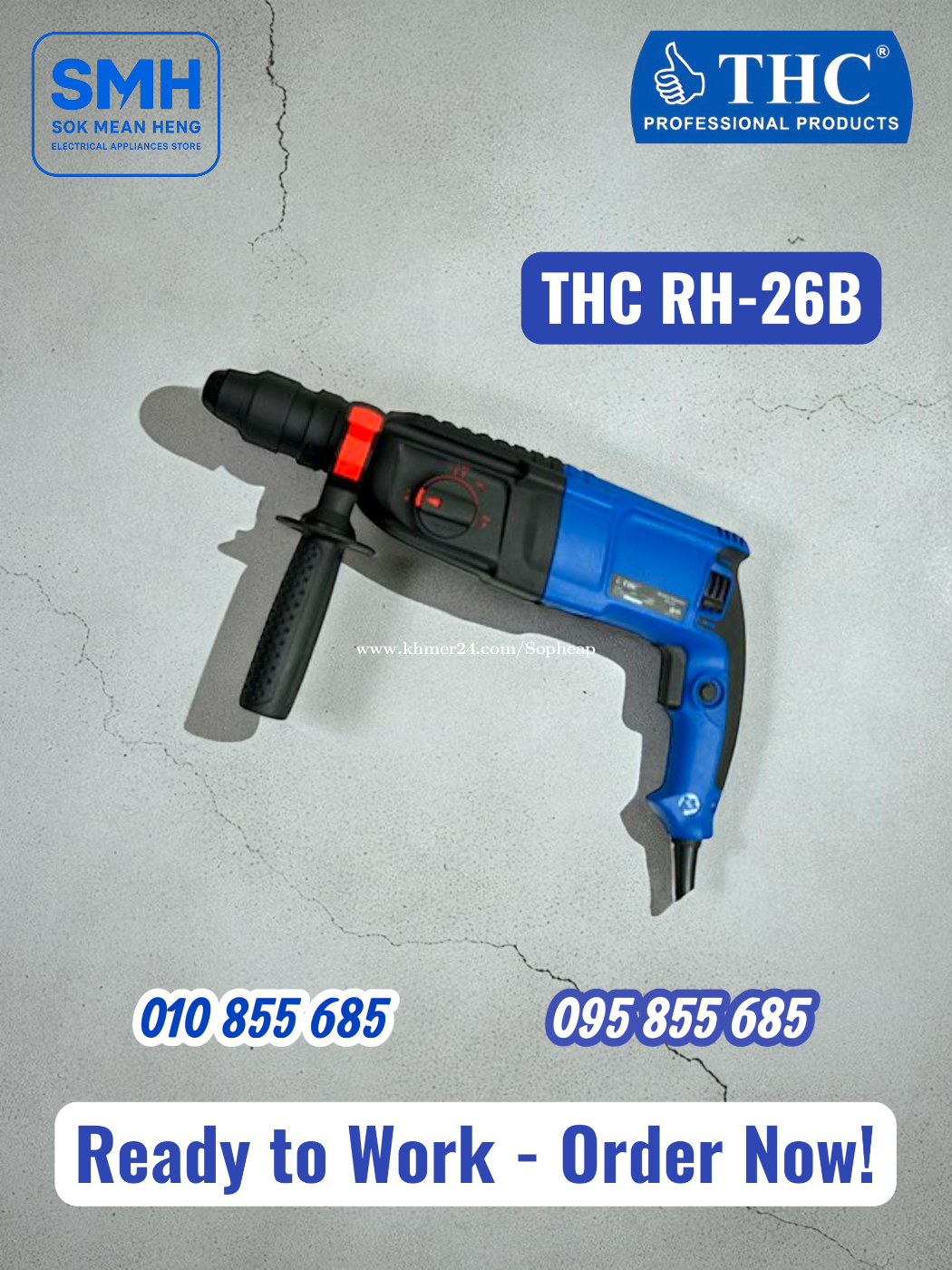 ម៉ូទ័រស្វាន_បុកបំបែក3តង់ THC RH-26B Rotary Hammer Drill _ 3 Functions Electric Hammer Drill 3 in 1 / Heavy Duty (ស្វាន / បុក / បំបែក) / (Drill, Hammer Drill, Chisel) . - ផលិតផលស្តង់ដាអន្តរជាតិ / International Standard Products - បច្ចេកវិទ្យារបស់ប្រទេសជប៉ុន / Technology of Japan - គុណភាពខ្ពស់ / កម្លាំងខ្លាំង / រឹងមាំ / ជាប់ធន់រាប់សិបឆ្នាំ - High Quality / Strong / Sturdy / Durable for decades - មានដៃកាន់ងាយស្រួលប្រើ / Easy to use Handle * មានការធានារយះពេល 6 ខែពេញ / Full 6-Months Warranty . 1. ម៉ូទ័រស្វាន_បុកបំបែក3តង់ THC RH-26B Rotary Hammer Drill - កំលាំង / Power: 850W _ 1100R/min - ផ្លែស្វាន / Drill Bit: 26mm * តំលៃ / Price: 59.9$ . 2. ម៉ូទ័រស្វាន_បុកបំបែក3តង់ THC RH-26A Rotary Hammer Drill - កំលាំង / Power: 850W _ 1100R/min - ផ្លែស្វាន / Drill Bit: 26mm * តំលៃ / Price: 69.9$ . SMH / សុខ មាន ហេង / Sok Mean Heng ហាងលក់គ្រឿងប្រើប្រាស់អគ្គិសនី / Electrical Appliances Store . ✅ ហាងផ្លូវការដែលមានការទទួលស្គាល់ត្រឹមត្រូវដោយ Khmer24 / Verified Business Account by Khmer24 💯 ទទួលបានទំនុកចិត្តខ្ពស់ពីអតិថិជនជាច្រើន / Trusted by Real Customers. 📍 មានទីតាំងច្បាស់លាស់ និងពិតប្រាកដនៅភ្នំពេញ / We have a clear and real/verified location in Phnom Penh. . Phone / Telegram (សេវាកម្មរហ័ស / Fast Service): Smart: 010855xxxClick To Call / https://t.me/Annsopheap Cellcard: 095855xxxClick To Call / http://t.me/Annsopheap095 . អាស័យដ្ឋាន / Address: No. 392, MaoTseToung Blvd. (St. 245), Phnom Penh. (Near P Jolie Beauty Center) . ផែនទី / Maps: https://www.google.com/maps?q=11.55595844757693,104.90165490657091&15 . #ធីអេកស៊ី #ម៉ូទ័រស្វាន #ម៉ូទ័រខួង #ម៉ូទ័របុក #ម៉ាស៊ីន #THC #Drill #Chisel #HeavyDuty #RotaryHammerDrill #RH26A #RH26B #Tools #SMH #Cambodia #Japan #Thailand #កម្ពុជា #ជប៉ុន #ថៃ #Appliances #HomeApplaince #ApplianceStore #ElectricAppliances #ElectricalAppliances #កម្ពុជា #ខ្មែរ #ភ្នំពេញ #Cambodia #Khmer #KH #PhnomPenh