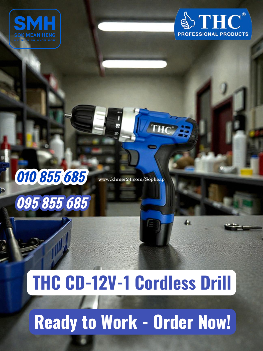 ម៉ូទ័រស្វាន_ប្រើថ្ម THC Cordless Drill Series Motor (New) . - ផលិតផលស្តង់ដាអន្តរជាតិ / International Standard Products - បច្ចេកវិទ្យារបស់ប្រទេសជប៉ុន / Technology of Japan - គុណភាពខ្ពស់ / កម្លាំងខ្លាំង / រឹងមាំ / ជាប់ធន់រាប់សិបឆ្នាំ - High Quality / Strong / Sturdy / Durable for decades - មានដៃកាន់ងាយស្រួលប្រើ / Easy to use Handle * មានការធានារយះពេល 6 ខែពេញ / Full 6-Months Warranty . 1. ម៉ូទ័រស្វាន_ប្រើថ្ម THC CD-12V-1 Cordless Drill - កំលាំង / Power: Li-ion12V _ 1500mAh _ 450R/min - ផ្លែស្វាន / Drill Bit: 10mm * តំលៃ / Price: 39$ . 2. ម៉ូទ័រស្វាន_ប្រើថ្ម THC CD-12V-1S Cordless Drill - កំលាំង / Power: Li-ion12V _ 1500mAh _ 450R/min - ផ្លែស្វាន / Drill Bit: 10mm * តំលៃ / Price: 44$ . 3. ម៉ូទ័រស្វាន_ប្រើថ្ម THC BID-18.5 Cordless Drill - កំលាំង / Power: 1450R/min - ផ្លែស្វាន / Drill Bit: 10mm - ស្វានដែក / Steel Saw: 10mm - ស្វានឈើ / Wood Saw: 32mm * តំលៃ / Price: 49$ . 4. ម៉ូទ័រស្វាន_ប្រើថ្ម THC CD-18V-1R Cordless Drill - កំលាំង / Power: Li-ion18V _ 1500mAh _ 450R/min - ផ្លែស្វាន / Drill Bit: 10mm * តំលៃ / Price: 64$ . SMH / សុខ មាន ហេង / Sok Mean Heng ហាងលក់គ្រឿងប្រើប្រាស់អគ្គិសនី / Electrical Appliances Store . ✅ ហាងផ្លូវការដែលមានការទទួលស្គាល់ត្រឹមត្រូវដោយ Khmer24 / Verified Business Account by Khmer24 💯 ទទួលបានទំនុកចិត្តខ្ពស់ពីអតិថិជនជាច្រើន / Trusted by Real Customers. 📍 មានទីតាំងច្បាស់លាស់ និងពិតប្រាកដនៅភ្នំពេញ / We have a clear and real/verified location in Phnom Penh. . Phone / Telegram (សេវាកម្មរហ័ស / Fast Service): Smart: 010855xxxClick To Call / https://t.me/Annsopheap Cellcard: 095855xxxClick To Call / http://t.me/Annsopheap095 . អាស័យដ្ឋាន / Address: No. 392, MaoTseToung Blvd. (St. 245), Phnom Penh. (Near P Jolie Beauty Center) . ផែនទី / Maps: https://www.google.com/maps?q=11.55595844757693,104.90165490657091&15 . #ធីអេកស៊ី #ម៉ូទ័រស្វាន #ម៉ូទ័រខួង #ប្រើថ្ម #ម៉ាស៊ីន #THC #Drill #CordlessDrill #Motor #Tools #CD12V1 #CD12V1S #BID18.5 #CD18V1R #SMH #Cambodia #Japan #Thailand #កម្ពុជា #ជប៉ុន #ថៃ #Appliances #HomeApplaince #ApplianceStore #ElectricAppliances #ElectricalAppliances #កម្ពុជា #ខ្មែរ #ភ្នំពេញ #Cambodia #Khmer #KH #PhnomPenh