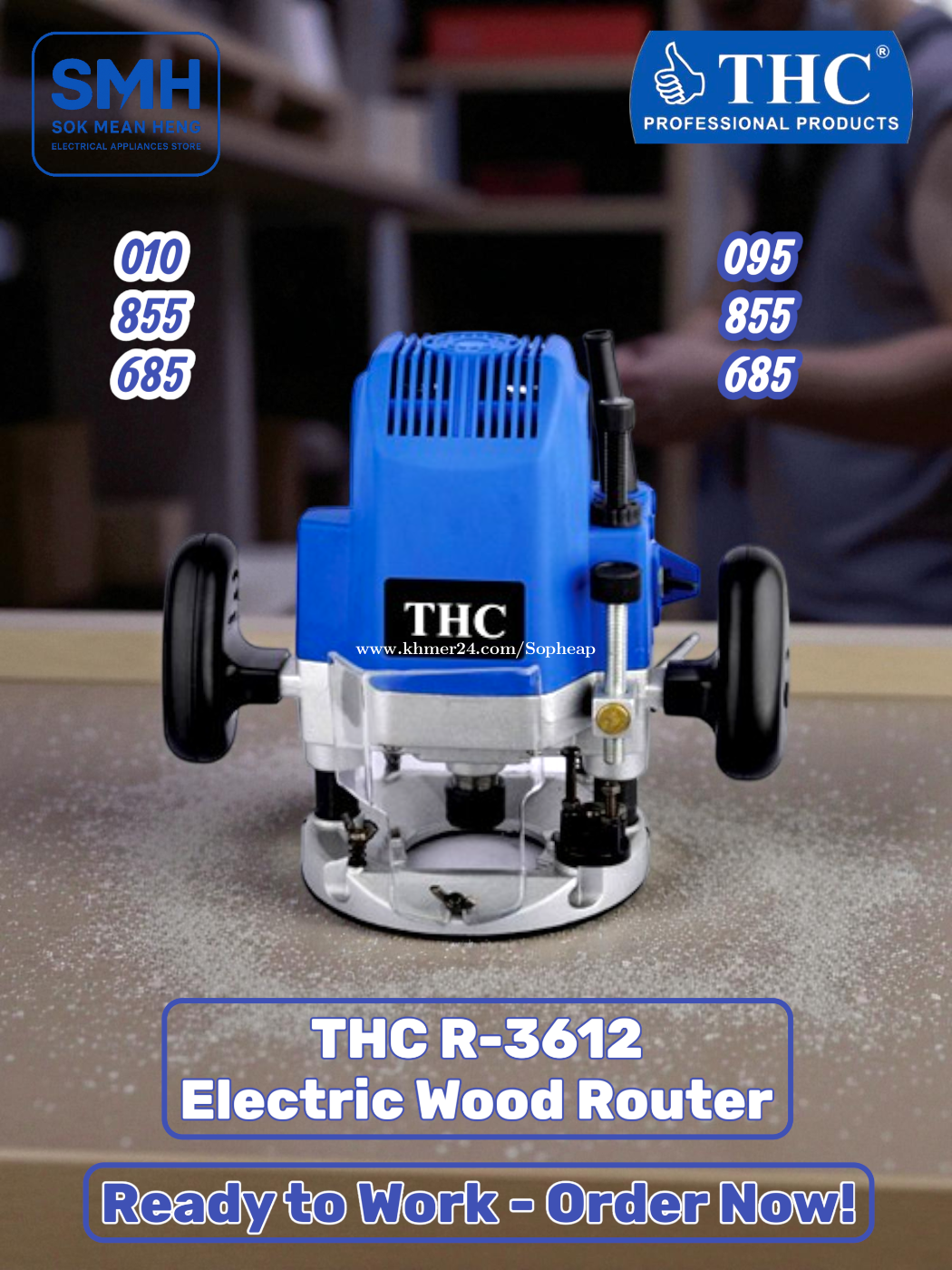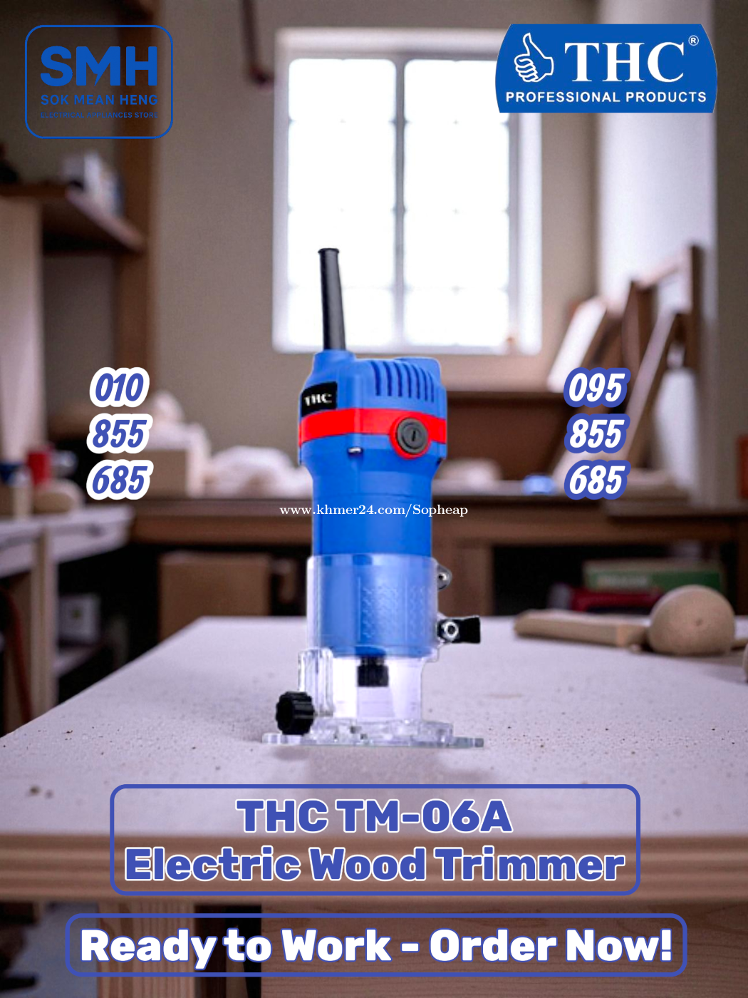 ម៉ូទ័រ.រលកឈើ THC Electric Wood Trimmer / Router _ 6mm / 12mm . - ផលិតផលស្តង់ដាអន្តរជាតិ / International Standard Products - បច្ចេកវិទ្យារបស់ប្រទេសជប៉ុន / Technology of Japan - គុណភាពខ្ពស់ / កម្លាំងខ្លាំង / រឹងមាំ _ High Quality / Strong / Sturdy * មានការធានារយះពេល 6 ខែពេញ / Full 6-Months Warranty . 1. ម៉ូទ័រ.រលកឈើ THC TM-06A Electric Wood Trimmer _ 6mm - កំលាំង / Power: 500W - ល្បឿន / Speed: 32000R/min - ទំហំផ្លែ / Collet Size: 6mm * តម្លៃ / Price: 34$ . 2. ម៉ូទ័រ.រលកឈើ THC R-3612 Electric Wood Router _ 12mm - កំលាំង / Power: 1500W - ល្បឿន / Speed: 23000R/min - ទំហំផ្លែ / Collet Size: 12mm * តម្លៃ / Price: 49$ . SMH / សុខ មាន ហេង / Sok Mean Heng ហាងលក់គ្រឿងប្រើប្រាស់អគ្គិសនី / Electrical Appliances Store . ✅ ហាងផ្លូវការដែលមានការទទួលស្គាល់ត្រឹមត្រូវដោយ Khmer24 / Verified Business Account by Khmer24 💯 ទទួលបានទំនុកចិត្តខ្ពស់ពីអតិថិជនជាច្រើន / Trusted by Real Customers. 📍 មានទីតាំងច្បាស់លាស់ និងពិតប្រាកដនៅភ្នំពេញ / We have a clear and real/verified location in Phnom Penh. . Phone / Telegram (សេវាកម្មរហ័ស / Fast Service): Smart: 010855xxxClick To Call / https://t.me/Annsopheap Cellcard: 095855xxxClick To Call / http://t.me/Annsopheap095 . អាស័យដ្ឋាន / Address: No. 392, MaoTseToung Blvd. (St. 245), Phnom Penh. (Near P Jolie Beauty Center) . ផែនទី / Maps: https://www.google.com/maps?q=11.55595844757693,104.90165490657091&15 . #ធីអេកស៊ី #ម៉ូទ័ររលកឈើ #ម៉ាស៊ីនរលកឈើ #ម៉ាស៊ីនកាត់ឈើ #ឧបករណ៍ជាងឈើ #THC #TM06A #R3612 #WoodTrimmer #WoodRouter #WoodTools #SMH #កម្ពុជា #ជប៉ុន #ថៃ #Cambodia #Japan #Thailand #Appliances #HomeApplaince #ApplianceStore #ElectricAppliances #ElectricalAppliances #Promotion #Discount #Save #Free #New #កម្ពុជា #ខ្មែរ #ភ្នំពេញ #Cambodia #Khmer #KH #PhnomPenh