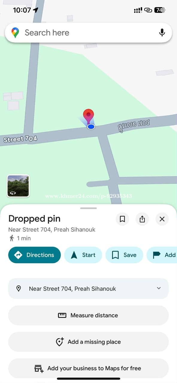ម្ចាស់ដីលក់ផ្ទាល់ ទីតាំងលើភ្នំមើលឃើញសមុទ្រ ទីតាំងក្នុងក្រុង ចុះពីផ្លូវលេខ ៤ ប្រហែល ៤០០ ទៅ ៥០០ ម៉ែត្រ ជាដីអំណោយផលមានទេសភាពស្អាតនៅជាប់ក្រុង មានប្លង់រឹងស្រាប់