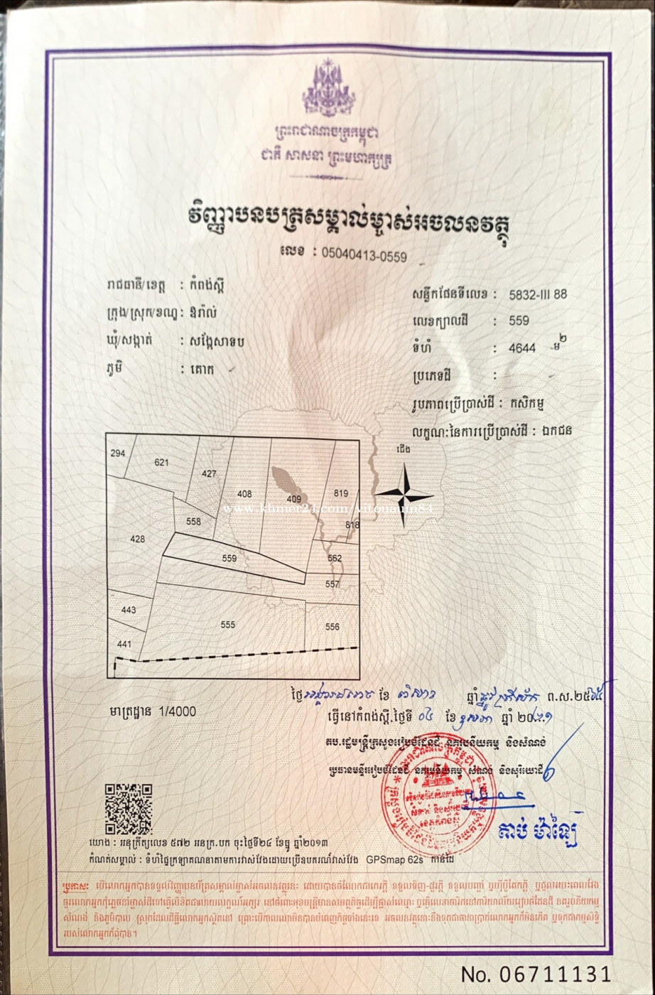 ជាប់ផ្លូវ44 គីឡូលេខ47-48 ក្បាលដី 117ម ទីតាំងល្អសម្រាប់រោងចក្រនិងទិញទុកចំណេញ ម្ចាស់ត្រូវការលុយសងគេ