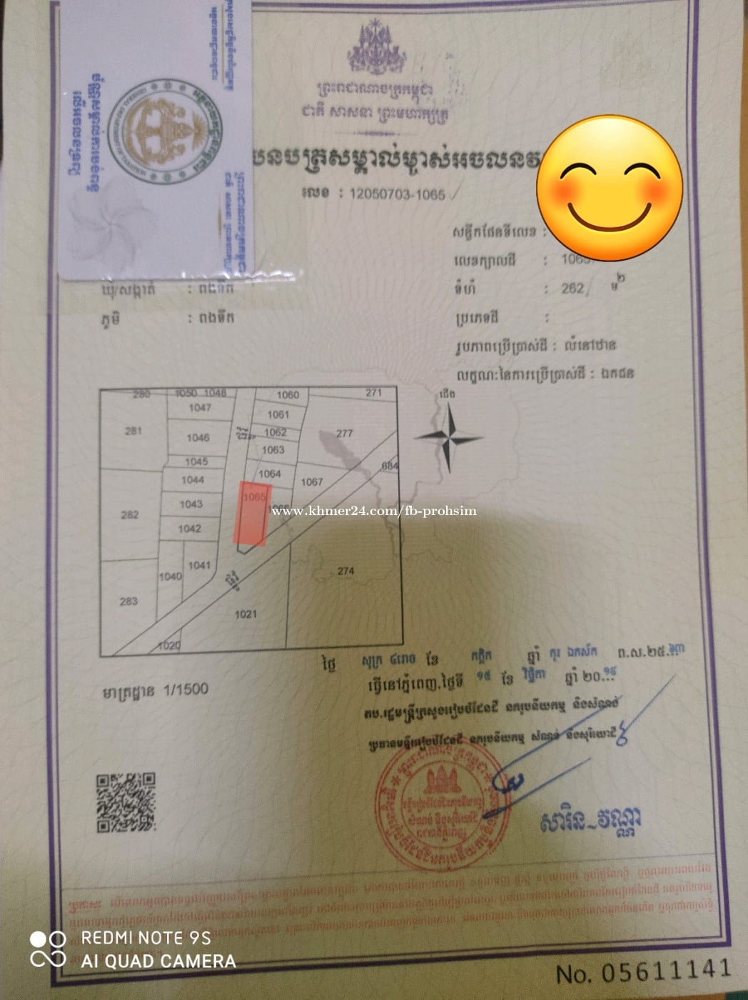 *ដីកែង ល្អ ក្បាល12.50 ម៉ែត្រ បែរទិសខាងត្បូង កន្ទុយ 10 ម៉ែត្រ ខាងជើង បណ្តោយខាងលិច 31 ម៉ែត្រ ជាប់ផ្លូវ បណ្តោយខាងកើត 22 ម៉ែត្រ ជាប់របងដីគេ ។ *សរុប 262 ម៉ែត្រការ៉េ ប្លង់រឹងឈ្មោះ ខ្ញុំផ្ទាល់ *ទីតាំងដី នៅភូមិពងទឹក សង្កាត់ពងទឹក ខណ្ឌដង្កោ រាជធានីភ្នំពេញ 20 ម៉ែត្រពី បុរីភ្នំមាស ទី8 ។ * មានភ្លើង 20 អាំពែរ * មានអណ្តូងទឹក * មានទឹកស្អាត ជាប់ដី *មានដំណាំហូបផ្លែ អាយុ ជាង 3 ឆ្នាំ *តម្លៃ 55 000$ ចរចារ កាត់ប្លង់រឹងជូន ☎️និងតេឡាក្រាម ទាំងពីរខ្សែ * 087859xxxClick To Call *012387xxxClick To Call