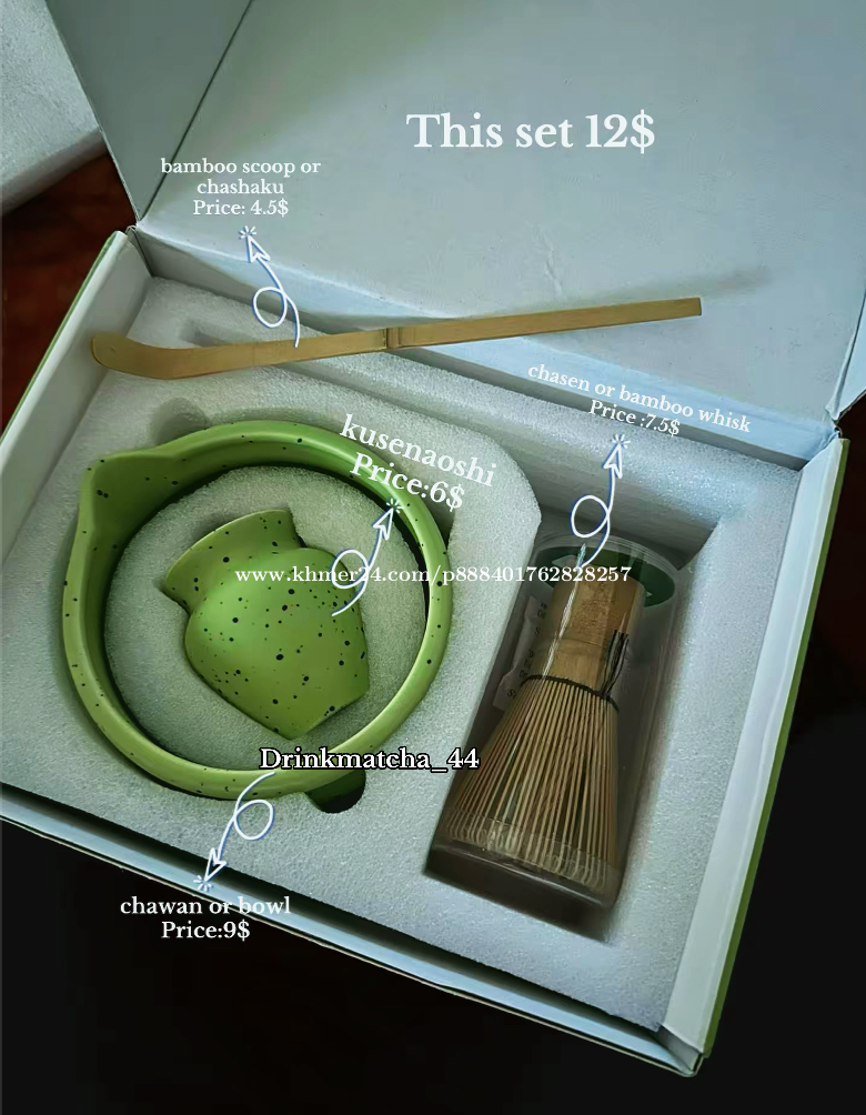 ម្សៅ matcha 100g តម្លៃ 6$ យក2 =11$ យក3=15$ Set matcha មានតម្លៃចាប់ពី 12$ឡើងទៅធានាមិនបែកបាក់មិនខូច