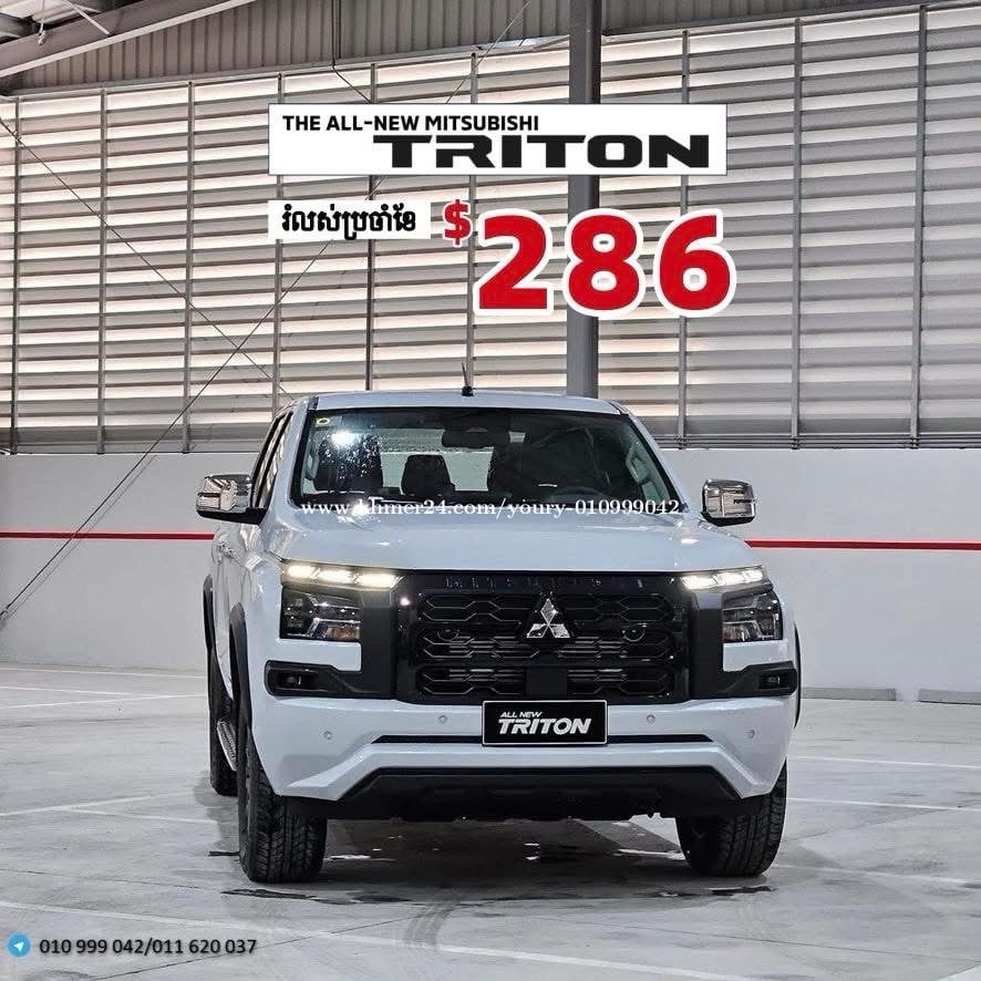 ជាមួយ The All New TRITON ទទួលបានការផ្ដល់ជូនតម្លៃដ៏ពិសេសក្នុងឱកាសឆ្នាំថ្មីនេះ😇 💥 បង់រំលស់ប្រចាំខែត្រឹមតែ 𝟐𝟖𝟔 𝐔𝐒𝐃 ក្នុងមួយខែ💥 👉សម្រាប់ព័ត៌មានបន្ថែមសូមទំនាក់ទំនងតាម: 📩 https://t.me/Mitsubishi_Youry ☎️ 010999xxxClick To Call / 011620xxxClick To Call រាល់ការជាវរថយន្តពីក្រុមហ៊ុន លោកអ្នកនឹងទទួលបាន: ✅ការធានាគុណភាពពីរោងចក្រ ✅ការថែរទាំ និង ប្តូរប្រេងម៉ាស៊ីនឥតគិតថ្លៃរយះពេល 1 ឆ្នាំរឺ 20,000km ✅ការផ្តល់ជូន កម្រាលជើង វត្ថុអនុស្សាវរីយ និងធ្វើស្លាកលេខ ដោយឥតគិតថ្លៃ ✅សេវាកម្មបង់រំលស់ ឯកសារងាយស្រួល រហ័សទាន់ចិត្ត ជាមួយនឹងការប្រាក់សមរម្យ