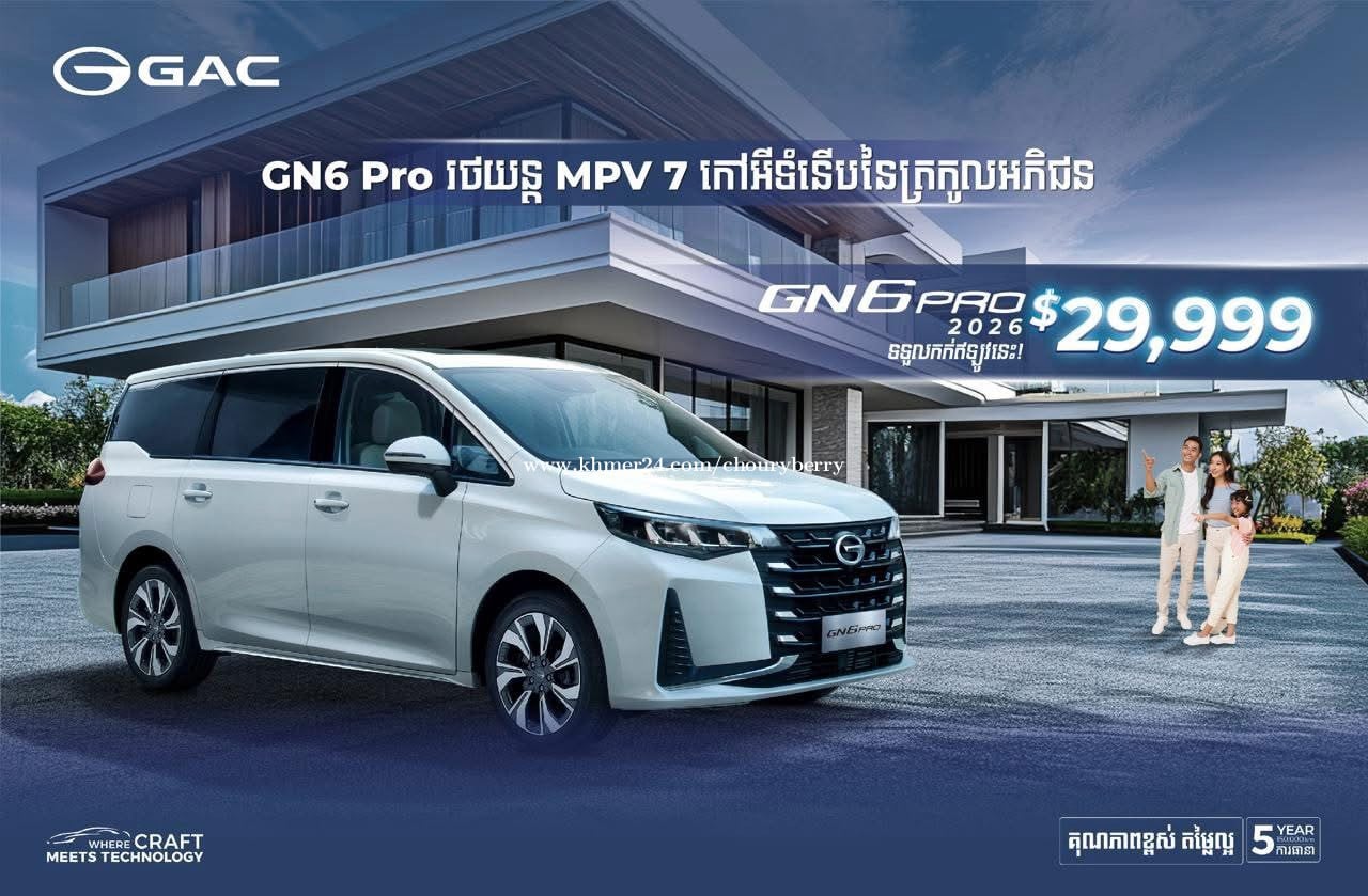 🚗𝐆𝐀𝐂 𝐆𝐍𝟔 𝐏𝐑𝐎 𝟐𝟎𝟐𝟔 ទំនើបនៃត្រកូលអភិជន ✨ តម្លៃពិសេសត្រឹមតែ $𝟐𝟗,𝟗𝟗𝟗 ប៉ុណ្ណោះ! MPV 7 កៅអី សម្រាប់គ្រួសារសម័យថ្មី ផ្តល់ផាសុខភាពខ្ពស់ ជាមួយការរចនាបទទំនើប និងបំពាក់បច្ចេកវិទ្យាចុងក្រោយ។ ✅ ទិញ GAC GN6 Pro ពីក្រុមហ៊ុនផ្លូវការលោកអ្នកទទួលបាន: 🔹រថយន្តសេរីឆ្នាំ 2026 🔹រថយន្ត Global Version ស្តង់ដារអន្តរជាតិ 🔹បច្ចេកវិទ្យាជំនួយក្នុងការបើកបរឆ្លាតវៃ ADAS 🔹ធានាចេញពីរោងចក្រ GAC ប្រទេសចិនផ្ទាល់ 🔹គ្រឿងបន្លាស់ និងសេវាកម្មដែលមានទំនុកចិត្តខ្ពស់ 🔹ជាងមានជំនាញ និងប្រកបដោយវិជ្ជាជីវៈ អតិថិជនដែលពេញចិត្តឬមានចំណាប់អារម្មណ៍ សូមធ្វើការកក់រថយន្ត GAC GN6 PRO សេរី2026 តាមរយៈក្រុមហ៊ុនផ្លូវការរបស់យើងGAC Motor Cambodia ។ __________________ ព័ត៌មានលម្អិត សូមទំនាក់ទំនងមកទីប្រឹក្សាផ្នែកលក់ផ្ទាល់៖ Ms.Yuri GAC ផ្នែកលក់រថយន្តថ្មី ☎️ 𝗛𝗼𝘁𝗹𝗶𝗻𝗲: 096235xxxClick To Call0 | 095777xxxClick To Call 📥 𝐓𝐞𝐥𝐞𝐠𝐫𝐚𝐦 https://t.me/henchoury 🏛 អគារតាំងបង្ហាញរថយន្ត 𝗚𝗔𝗖 𝗠𝗼𝘁𝗼𝗿 𝗖𝗮𝗺𝗯𝗼𝗱𝗶𝗮 📍 𝗚𝗼𝗼𝗴𝗹𝗲 𝗺𝗮𝗽: https://shorturl.at/raJCr អគារ #11 មហាវិថីសហព័ន្ធរុស្សី សង្កាត់កាកាប ខណ្ឌពោធិ៍សែនជ័យ ក្រុងភ្នំពេញ ©️𝗚𝗔𝗖 𝗠𝗼𝘁𝗼𝗿 𝗖𝗮𝗺𝗯𝗼𝗱𝗶𝗮 — ជាតំណាងចែកចាយផ្លូវការរថយន្ត 𝗚𝗔𝗖 នៅកម្ពុជា ក្រោមក្រុមហ៊ុន 𝗧𝗛 𝗚𝗿𝗼𝘂𝗽 ៕ #GACCambodia #MPV #GN6Pro