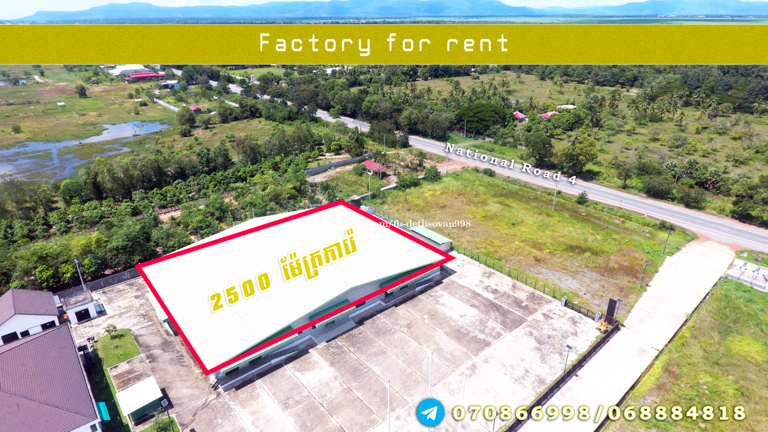 រោងចក្រជួល មានបន្ទប់ការិយាល័យ និងបន្ទប់ទូរត្រជាក់ ក្រុមហ៊ុន/ម្ចាស់អចលនទ្រព្យសូមជូនដំណឹងថា មាន រោងចក្រជួល ដែលមានលក្ខណៈសម្បត្តិដូចខាងក្រោម៖ • ទំហំសរុប: 2,500 ម៉ែត្រការ៉េ • បន្ទប់ការិយាល័យ: 6 បន្ទប់ (មានម៉ាស៊ីនត្រជាក់) • បន្ទប់ទូរត្រជាក់: 5 ទំហំប្រហែល100 m² បន្ទប់ (អាចប្រើសម្រាប់ផ្ទុកផ្លែឈើ ដូចជា ស្វាយ ដំណាប់ស្វាយ និងផ្សេងៗ) ចំណាំ: បន្ទប់ ទី2, 4 និង 5 មានទំហំស្មើគ្នា • ចូលចេញងាយស្រួល សម្រាប់ឡានធំ និងឡានកុងតាន័រ • ភ្លើងត្រង់ស្វូ 2000 kVA មានរួចរាល់ • បរិវេនស្អាត និងមានអនាម័យ ទីតាំង៖ កំពង់ស្ពឺ (គីឡូម៉ែត្រ 81) ⭐️តម្លៃជួល៖ $5555 តម្លៃចរចា⭐️ 📞 ទំនាក់ទំនង: 070866998 📧 អ៊ីមែល: [email protected]
