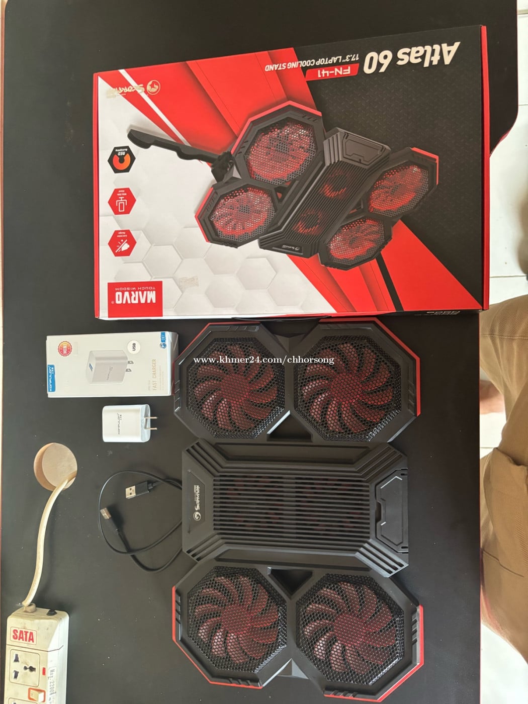 លក់កង្ហាត្រជាក់laptop MARVO ATLAS 60 + Konfulun Adaptor ប្រើបានតិច តម្លៃ 25$ Telegram: 0717123xxxClick To Call