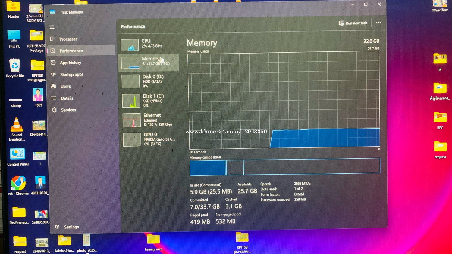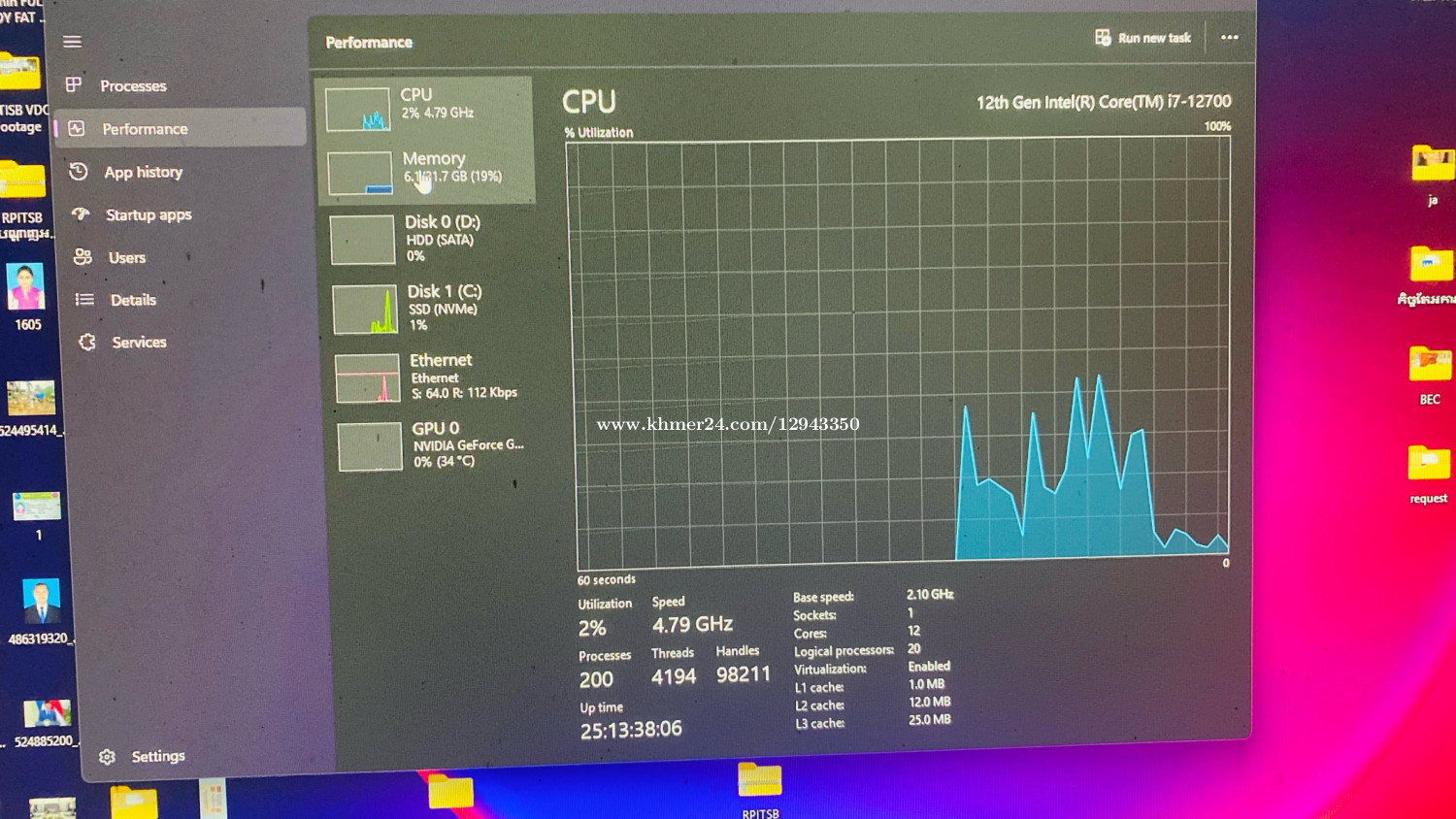 CPU Intel Core(TM) i7-12700 (2.10 GHz) 20cpu I RAM 32.0 GB (31.7 GB usable) M.2 500gb HDD 1Tb Keyboard RGB Mouse RGB Monitor dell 27inh FHD