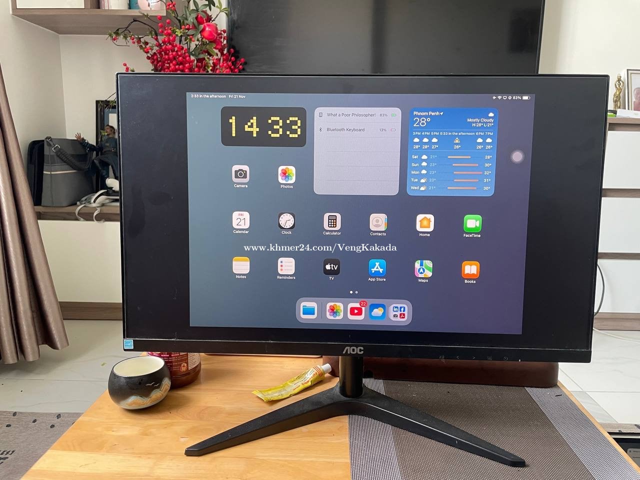 មានក្បាលកុំព្យូទរ័ មួយនៅថ្មីមិនសូវប្រើម៉ាក AOC តម្លៃអាចចរចាទៀតបាន AOC 23.8″ Gaming Monitor • Size: 23.8″ diagonal (≈ 60.5 cm) • Resolution: 1920 × 1080 (FHD) • Aspect Ratio: 16:9 • Panel Type: IPS (for this gaming model) • Dimensions (approx for a similar AOC 24-inch model): One spec sheet shows 539.5 × 320.9 × 37.6 mm (W × H × Depth) for an AOC 23.8″ model.