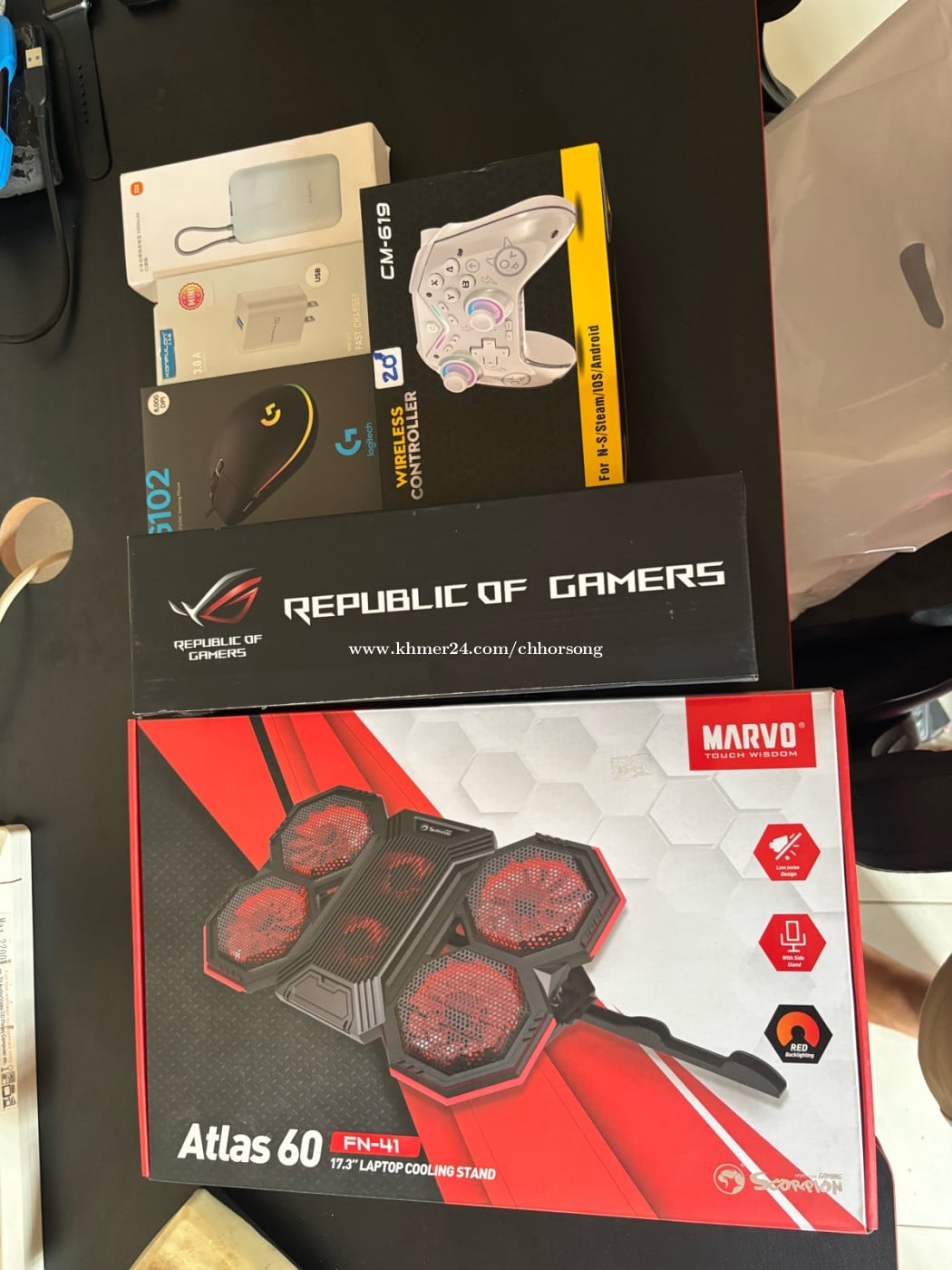 លក់គ្រឿងLaptop ប្រើបានតិចបំផុត (1) កង្ហាត្រជាក់ MARVOL ATLAS 60 + Kunfulun Adaptor 20$ (2) ដៃWireless Controller CM619 17$ (3) MOUSE LOGITEC G102 + ROG Mousepad 25$ (4) Xiaomi Power Bank 17$ (នៅធានា៥ខែ មានCCC ស្រួលយកឡើយឭងយន្តហោះ) បើយកទាំងអស់គិតអោយ 70$ ចរចារបានចុះតិចតួចទេ លក់ព្រោះលក់Laptopចេញបាត់ហើយ Contact Telegram: 0717123xxxClick To Call
