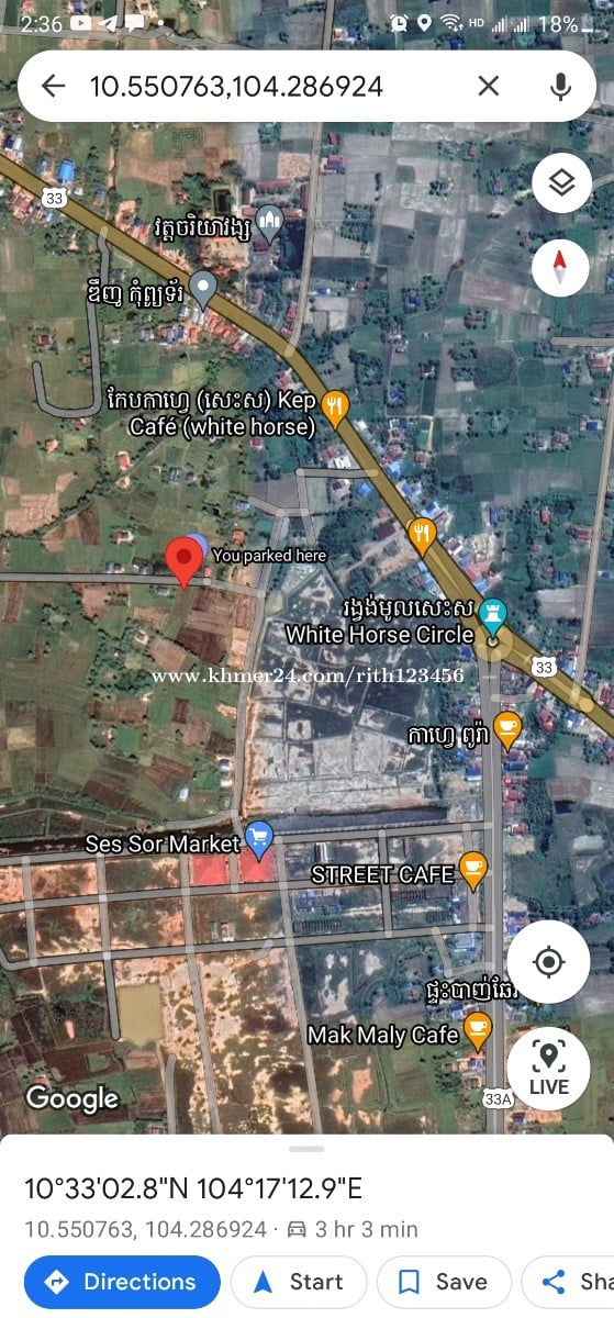 លក់ដីផ្ទាល់ខ្លួន នៅភូមិអូរក្រសារ ឃុំអូរក្រសារ ក្រុងកែប ខេត្តកែប - ពីផ្សារសេះសរ ប្រហែល500m ដល់ដី និងជាប់ផ្ទះអ្នកភូមិ - ប្លង់រឹង(ប្រភេទដីលំនៅដ្ឋាន) - មានរបងជុំវិញដី - ទំហំ 1258m2 (ទទឹង26m x បណ្តាយ43m&53m) - តម្លៃ 98000$ លេខទូរស័ព្ទ 010269xxxClick To Call / 017975xxxClick To Call Map https://maps.app.goo.gl/REgLB1LRwsZimG5T6