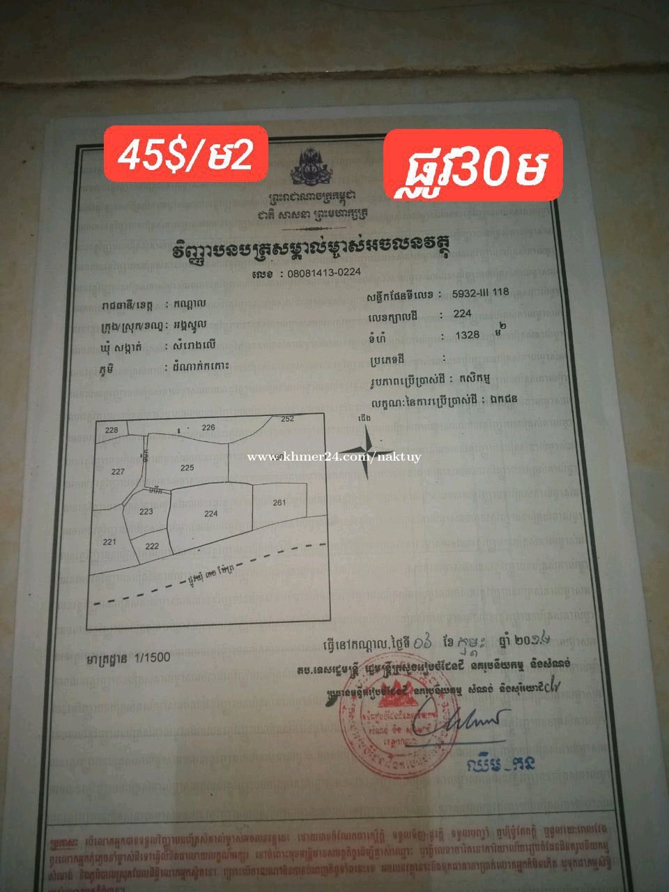 យើងខ្ញុំត្រូវការលក់ដីមួយកន្លែងដែលមានទីតាំងនៅសង្កាត់ឪឡោកខណ្ឌកំពូលរាជធានីភ្នំពេញ តម្លៃត្រឹមតែ 45.000ចរចា ដុល្លារតម្លៃម៉ៅអាចចូលចិត្តបាន សូមអរគុណ