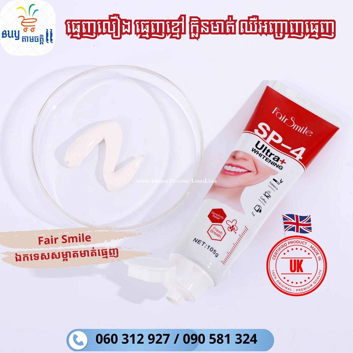 បោះដុំថ្នាំដុះធ្មេញអង់គ្លេស មួយឡូតិ៍មាន12ដប តម្លៃ16$ មួយកេះមាន8ឡូតិ៍ មាន96ដប តម្លៃ0.9$/ដប,ចាប់ពី10កេះទៅ លក់រាយតម្លៃ2$ ទំនាក់ទំនង 010614xxxClick To Call មានតេឡេក្រាម