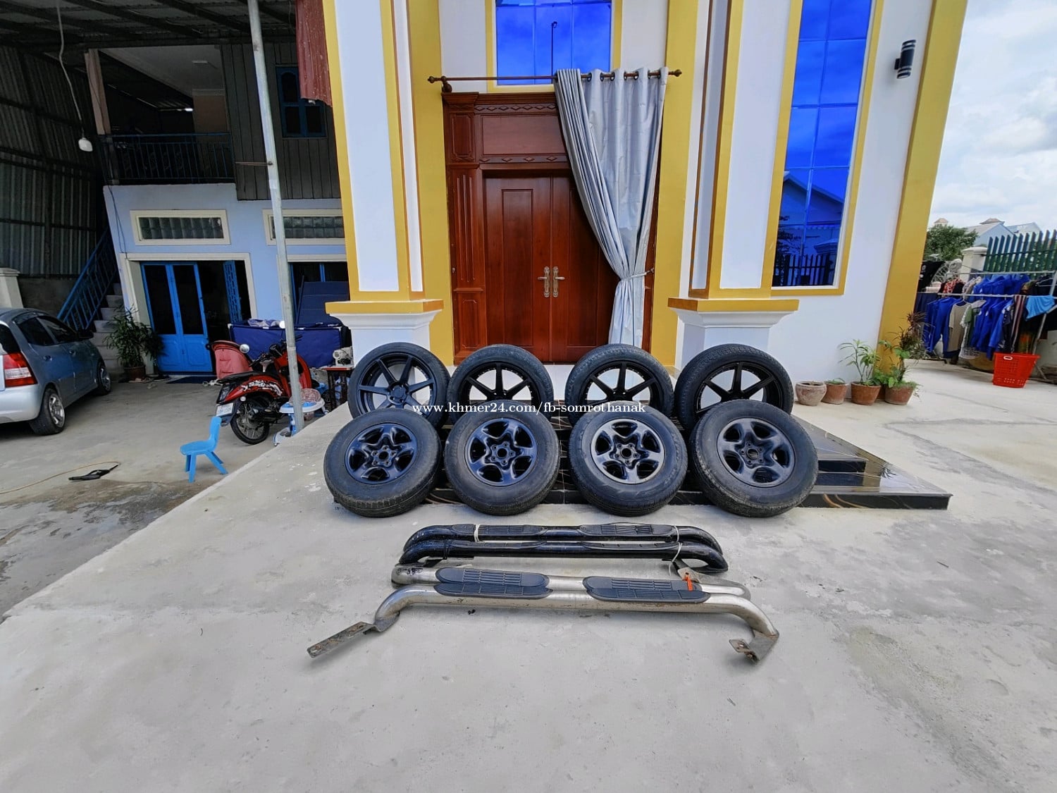 យ៉ាន់រវល់ R20 245/45 មួយឈុត 80% យ៉ាន់ដែកសុីនជាប់មកជាមួយឡានចាស់មួយឈុត ឈ្នូនជាន់ជើងចំហែង highlander មួយគូរ ឈ្នូនជាន់ជើងចំហែង lexus 300 ពណ៍ខ្មៅមួយគូរ