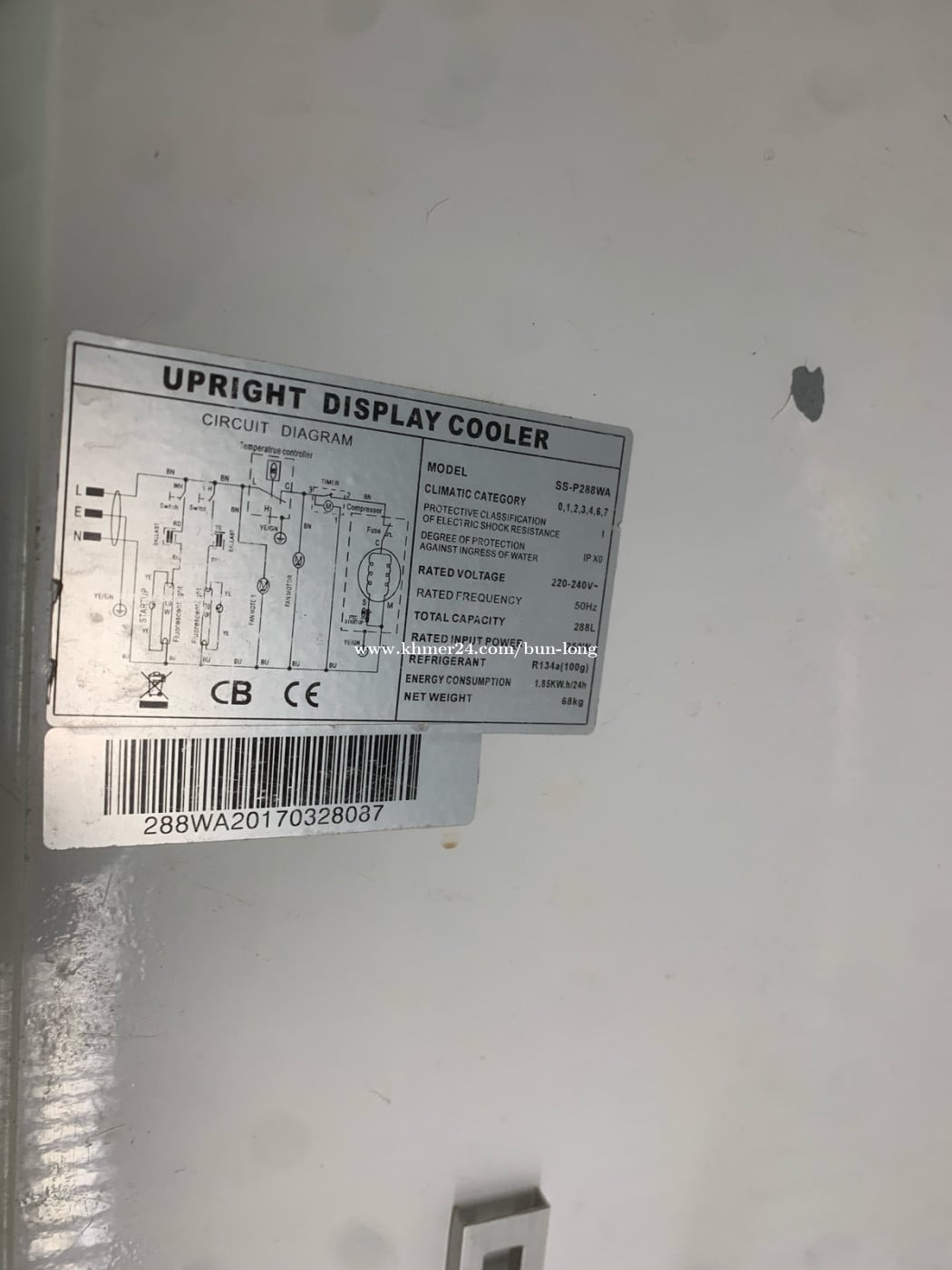 ទូរក្លាស់សេទ្វារ1 ចំណុះ288L ម៉ាកI COLD កំពស់=175CM ជំរៅ. =53CM ទទឺង =57CM