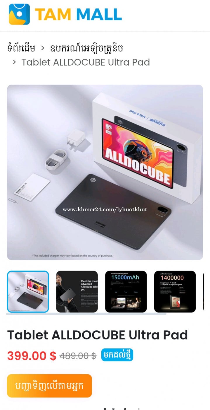 ខ្ញុំចង់លក់វិញ ព្រោះត្រូវការលុយបង់ថ្លៃសាលាបន្ទាន់ ខ្ញុំទើបតែទិញប្រើបានជាង១សប្តាហ៍ Tablet Alldocube មានទំហំថ្មធំដល់ 15000mAh លក្ខណៈសម្បត្តិ - អេក្រង់ទំហំ: 13 inch - Refresh Rate: 144Hz - Storage: 256GB ( expandable to 1TB) - Ram: 12GB - ទំហំថ្ម: 15000mAh - កម្លាំងសាក Fast Charge: 33W - មុខងារ : Desktop Mode - កម្រិតពន្លឺ: 700nits - កម្រិតបង្ហាញ: 2.8k - កាមេរ៉ា: ខាងមុខ 5MP ខាងក្រោយ 13MP - Speaker: 8គ្រាប់ តេលេក្រាម : https://t.me/Lyhuotkhut Info: https://www.facebook.com/share/v/1DUeFYHyhf/