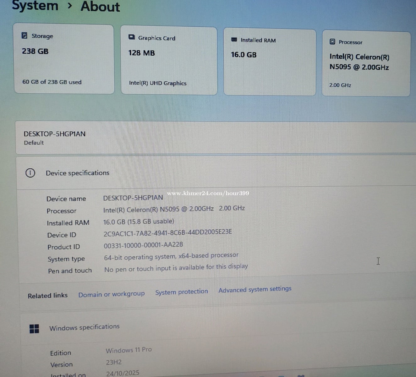 BDZ 99% អ៊ុត1ជុំដូចថ្មី(មើលឃើញរលាត់ជាស្គុត) ផលិតManufacture: 202409 Celeron N5095 2.0GHz (ស៊ីភ្លើងតិចUltra-low power processor) NVMe M.2 PCIe: 256G Ram 16G DDR4 Key lid Keyភ្លើង 17" HD+, Camera, Port Type C HDMI...ថ្ម 3ម៉ោង telegram : https://t.me/Lyn88998 0318888xxxClick To Call